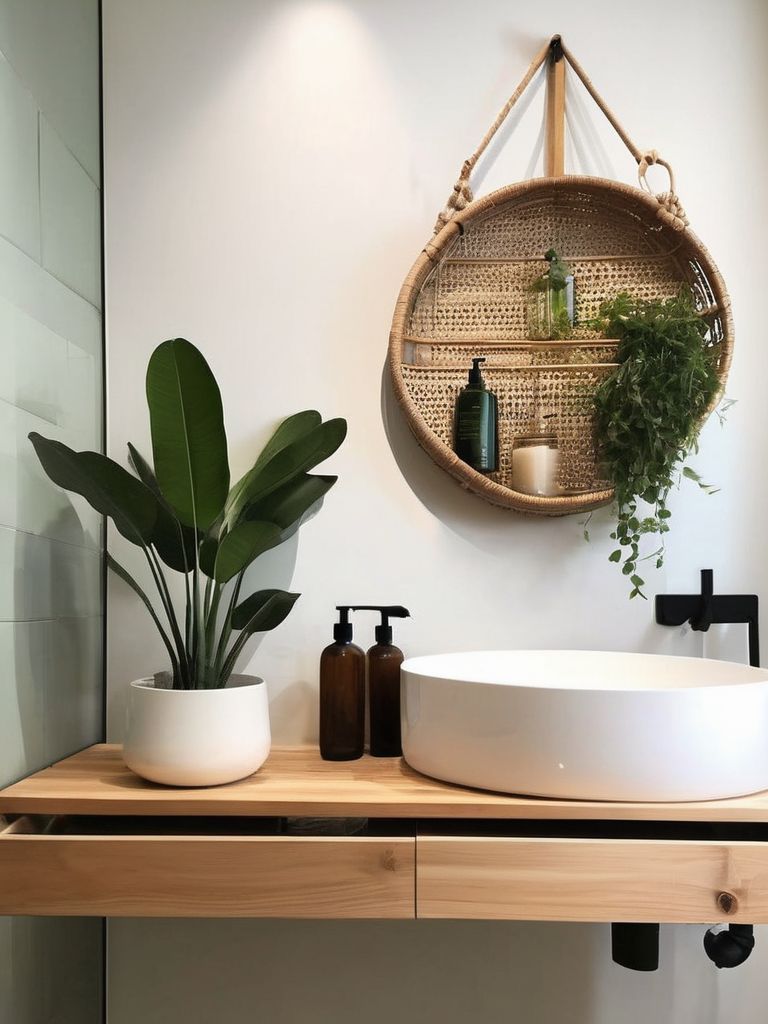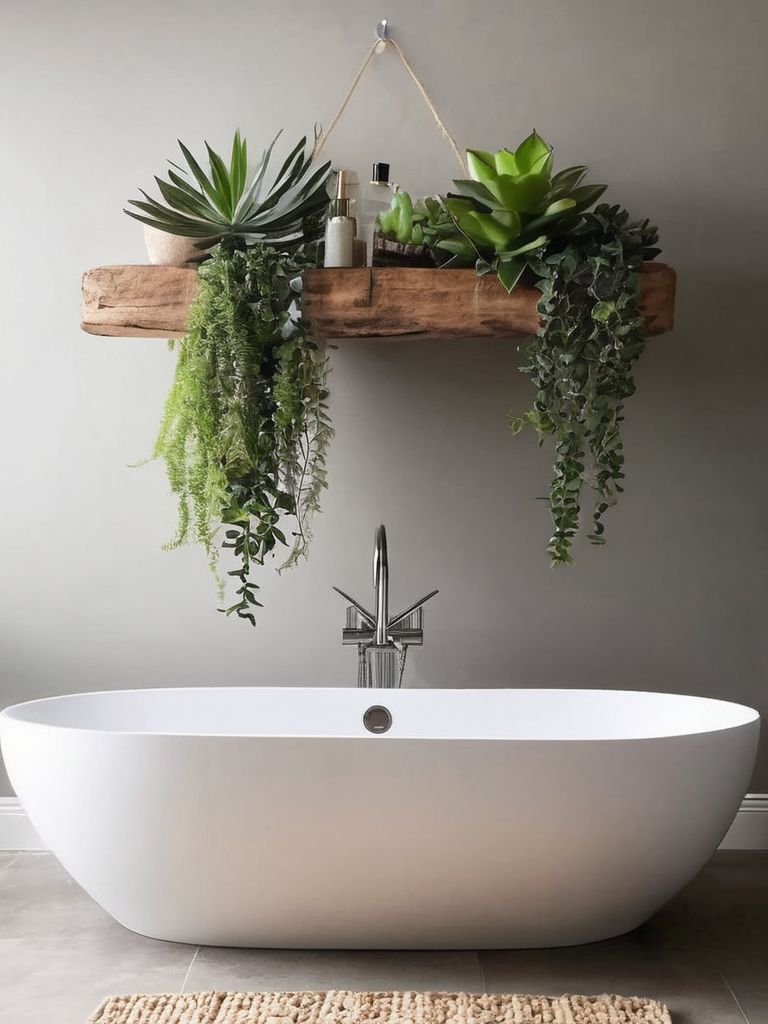 Transform your bathroom into a serene oasis by incorporating lush greenery and natural elements. Consider adding hanging plants or potted varieties to bring a touch of tranquility to the space. Pair this with earthy accents like wooden shelving and natural materials to create a calming and rejuvenating atmosphere in your bathroom.