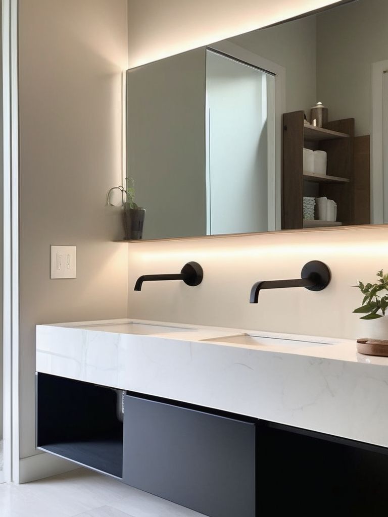 Revamp your bathroom with a modern touch by incorporating floating vanities for a sleek and minimalist look. Utilize space and emphasize clean lines with floating vanities, which create the illusion of a larger space and offer a contemporary feel. Choose from a variety of materials, such as marble, quartz, or wood, to complement your aesthetic. Consider integrating LED lighting underneath for a functional, yet stylish feature. Elevate your bathroom space with a focus on simplicity and sophistication.