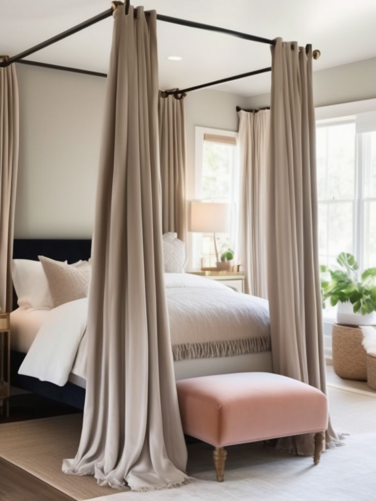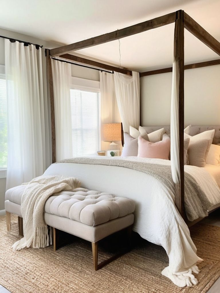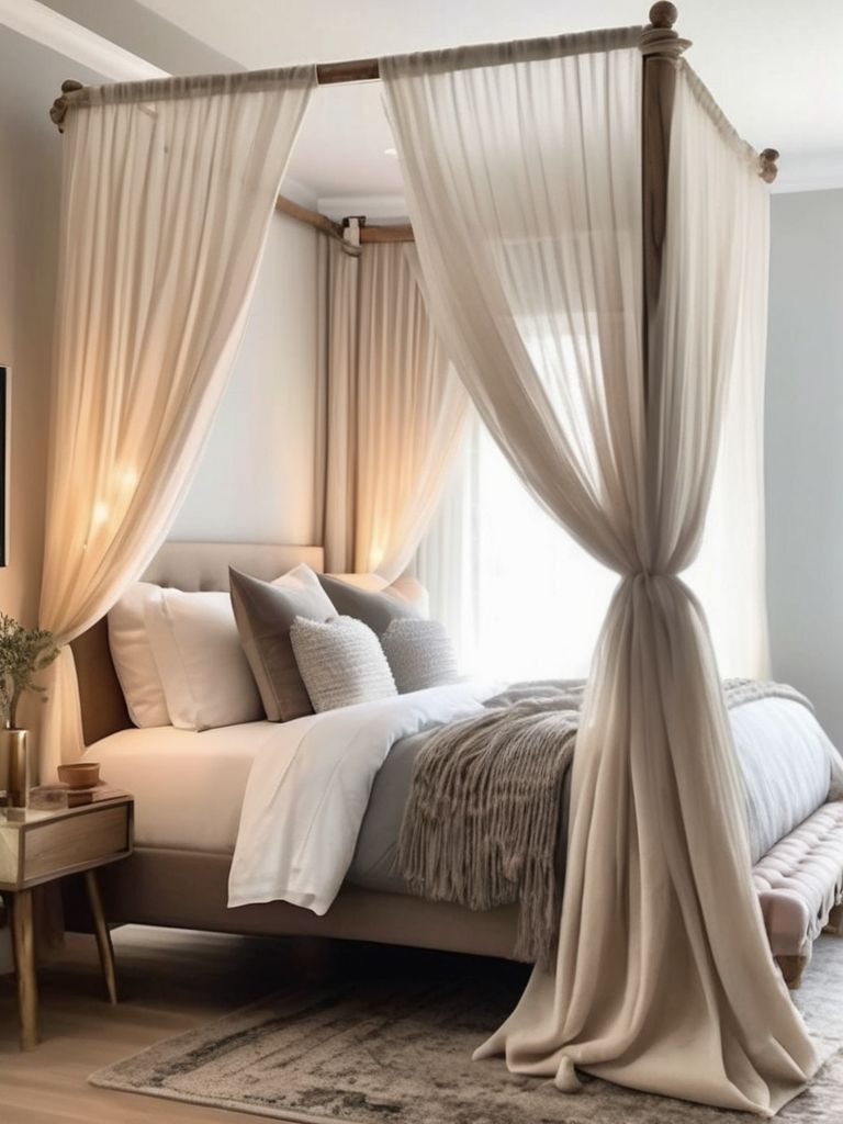Create your dream cozy sanctuary with a stunning canopy bed for a touch of luxury and elegance