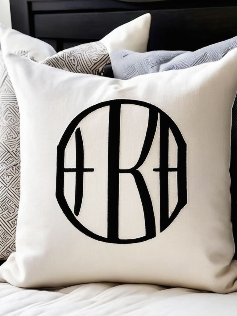 Monogrammed throw pillows, Customized wall art, Embroidered bedding, Personalized decor items, Decorative accents with initialsDescription