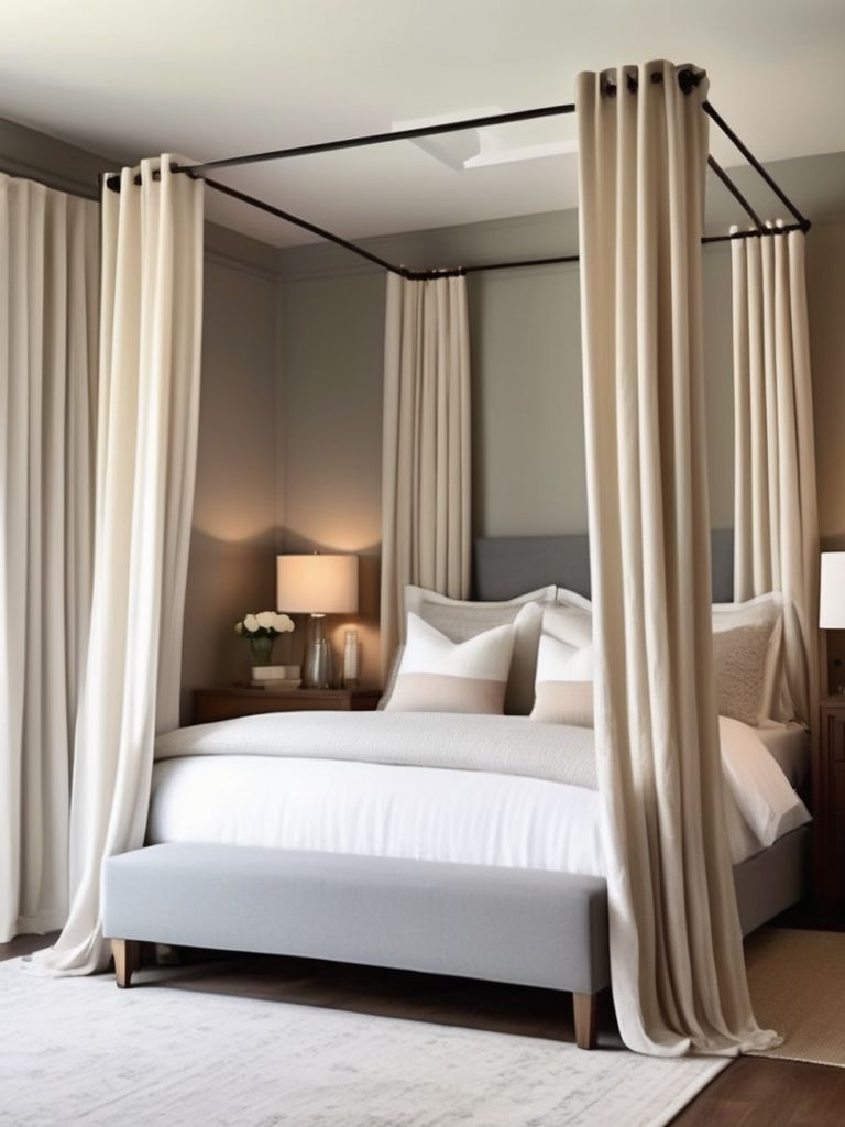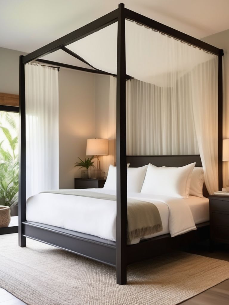 Dreamy Ideas for Creating a Tranquil Oasis with a Canopy Bed and Sheer Curtains in Your Bedroom