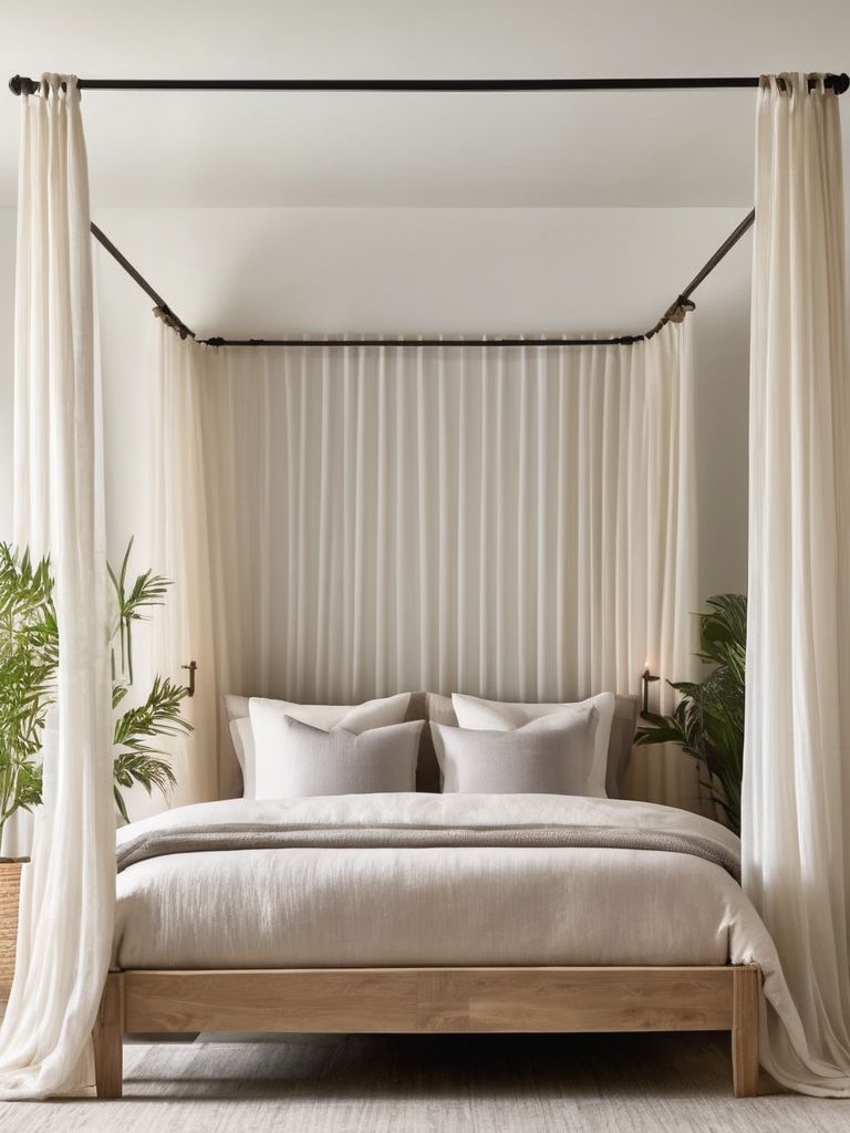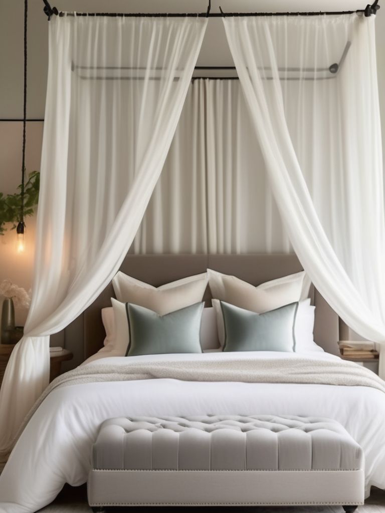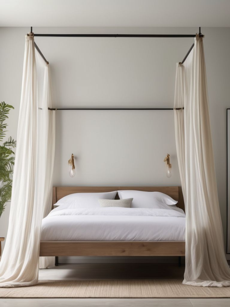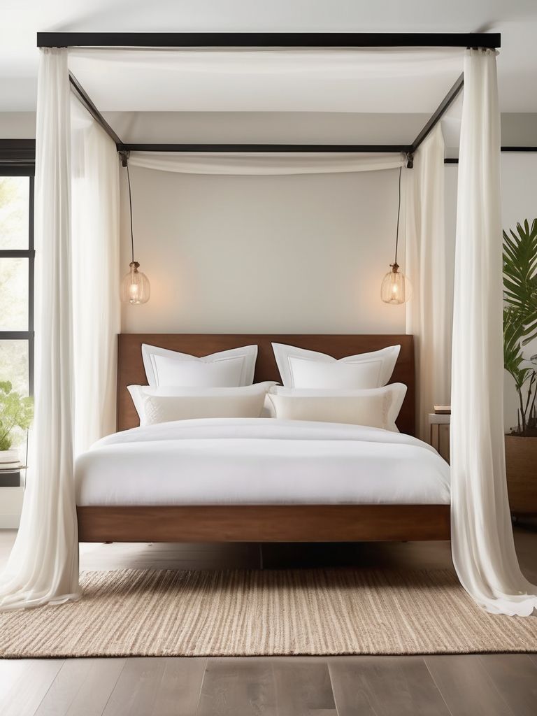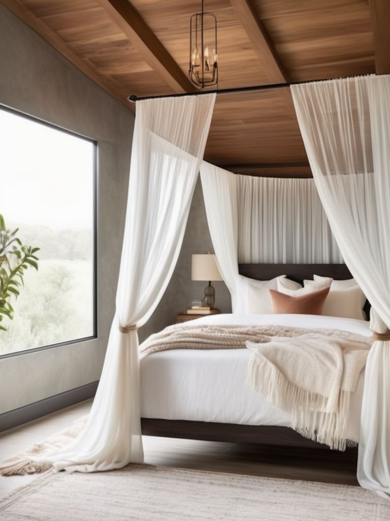 Transform your bedroom into a tranquil oasis by incorporating a canopy bed and sheer curtains. Choose a bed frame with a sleek and modern design, then drape sheer curtains for a dreamy and ethereal feel. Mix and match textures and patterns to add depth and interest, and opt for calming color palettes to evoke relaxation. Consider adding soft, plush bedding and statement lighting for a cozy and inviting retreat.