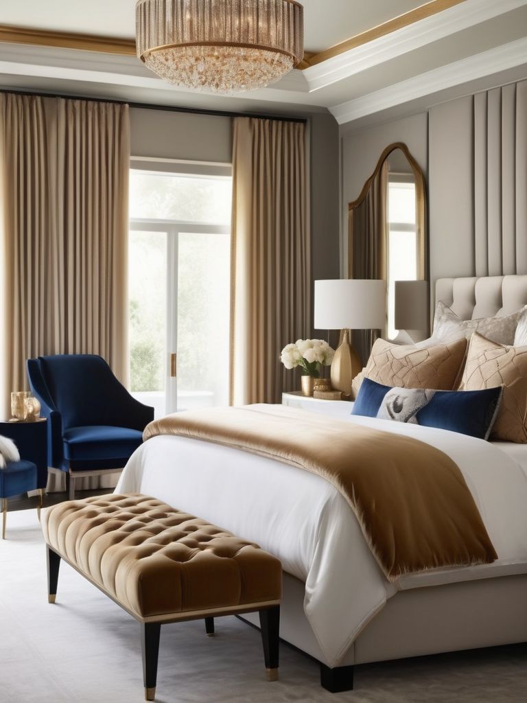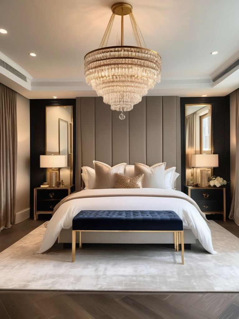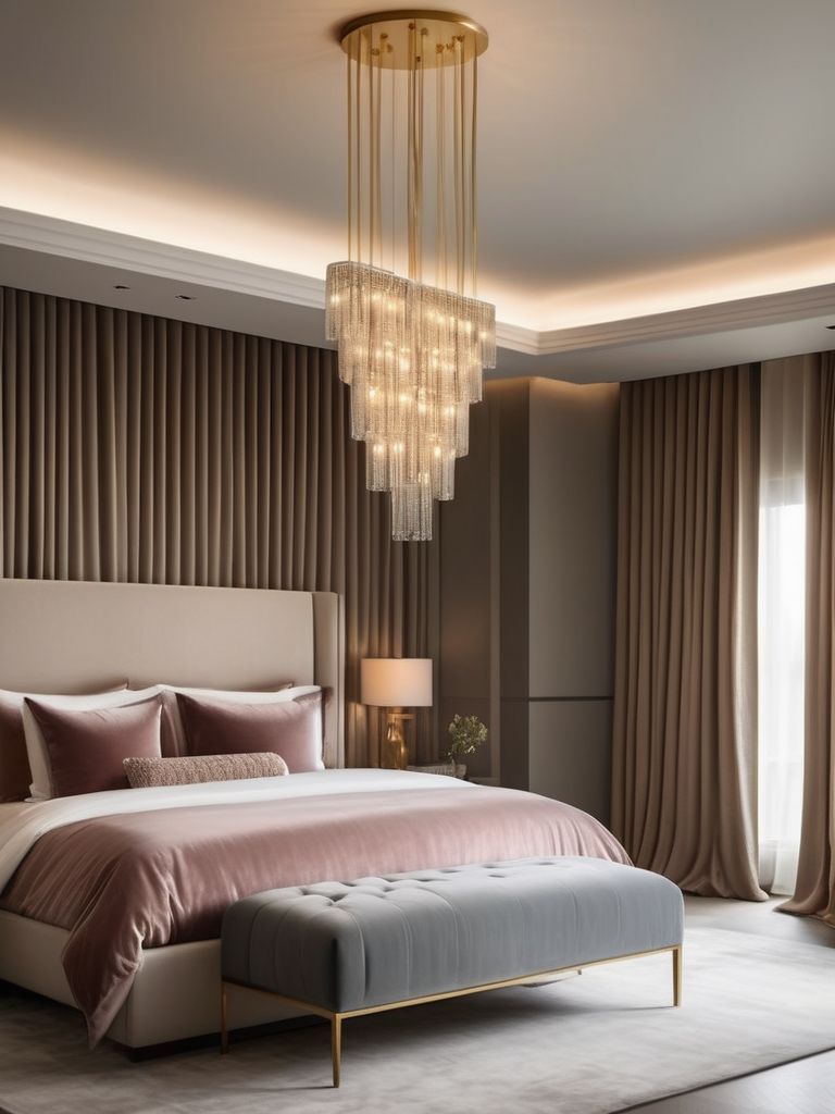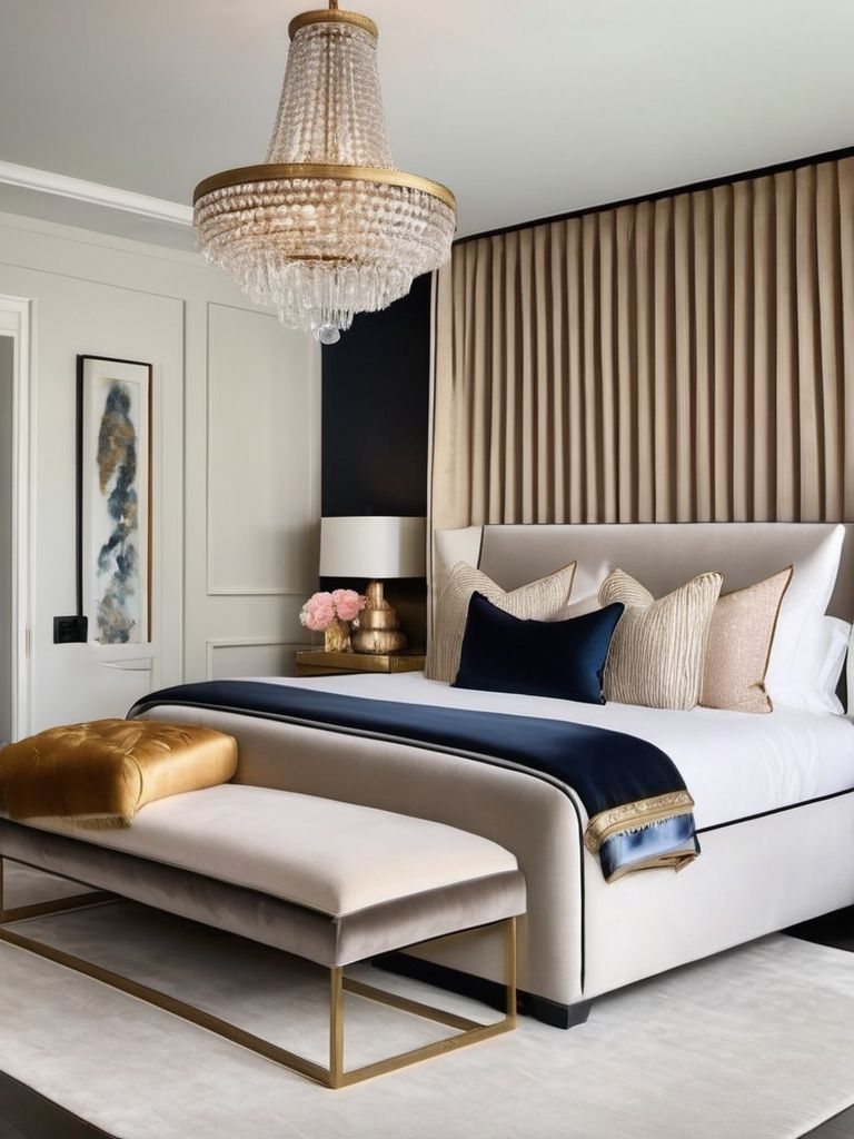 Transform Your Bedroom into a Luxurious Haven with Opulent Fabrics and Statement Lighting