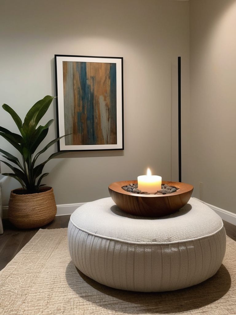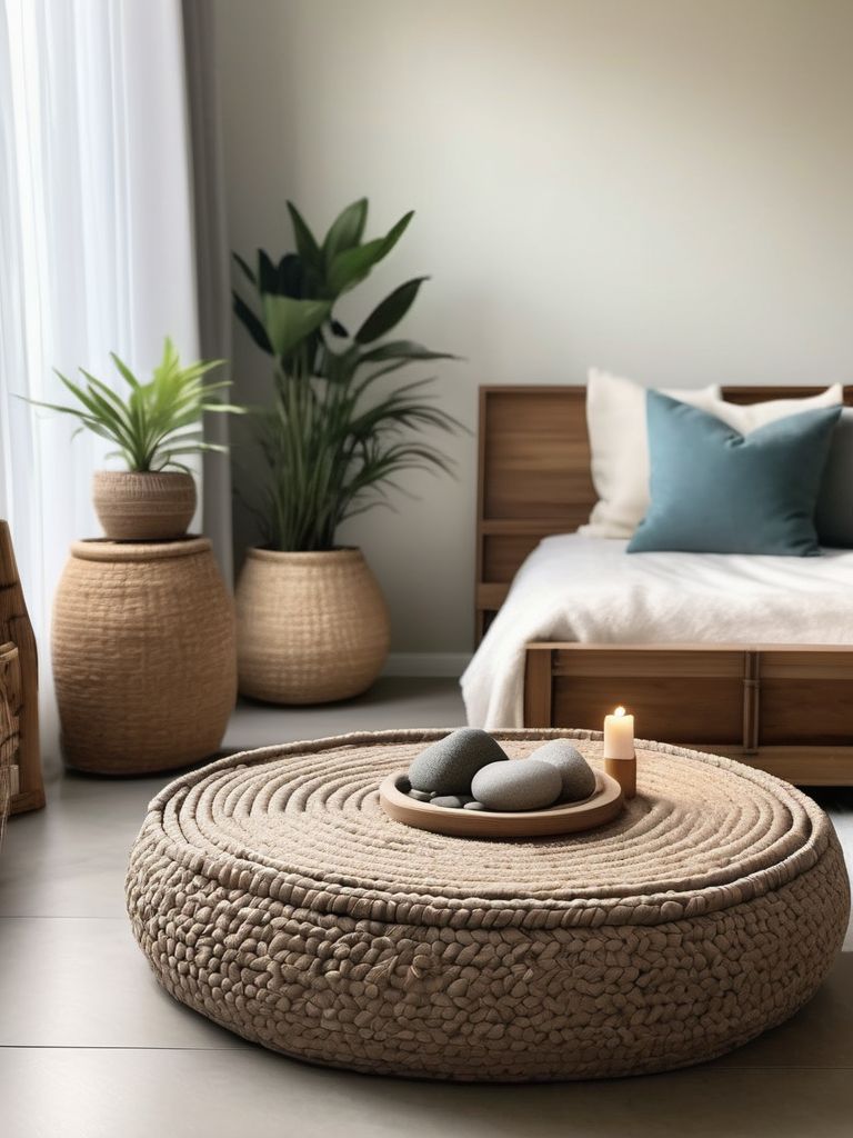 Create a tranquil meditation nook within your bedroom by incorporating elements of serene decor. Utilize soft, natural materials like bamboo or rattan for furniture and decor, and consider adding a relaxing fountain or a mini Zen garden for a calming touch. Choose a soothing color palette with muted tones and incorporate elements of nature, such as potted plants or natural wood accents. Embrace minimalist design to create a peaceful and inviting space for meditation and relaxation.