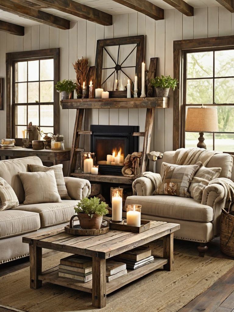 Furniture Placement: Describe a cozy and inviting living room space adorned with plush sofas in neutral tones, accented by vibrant cushions and throws in various textures and patterns. Include details about tastefully arranged coffee tables and side tables adorned with carefully chosen decor items, such as scented candles and potted plants, to create an atmosphere of harmony and relaxation. Finally, discuss the strategic placement of artwork on the walls and the use of layered lighting to enhance the overall ambiance of the room.