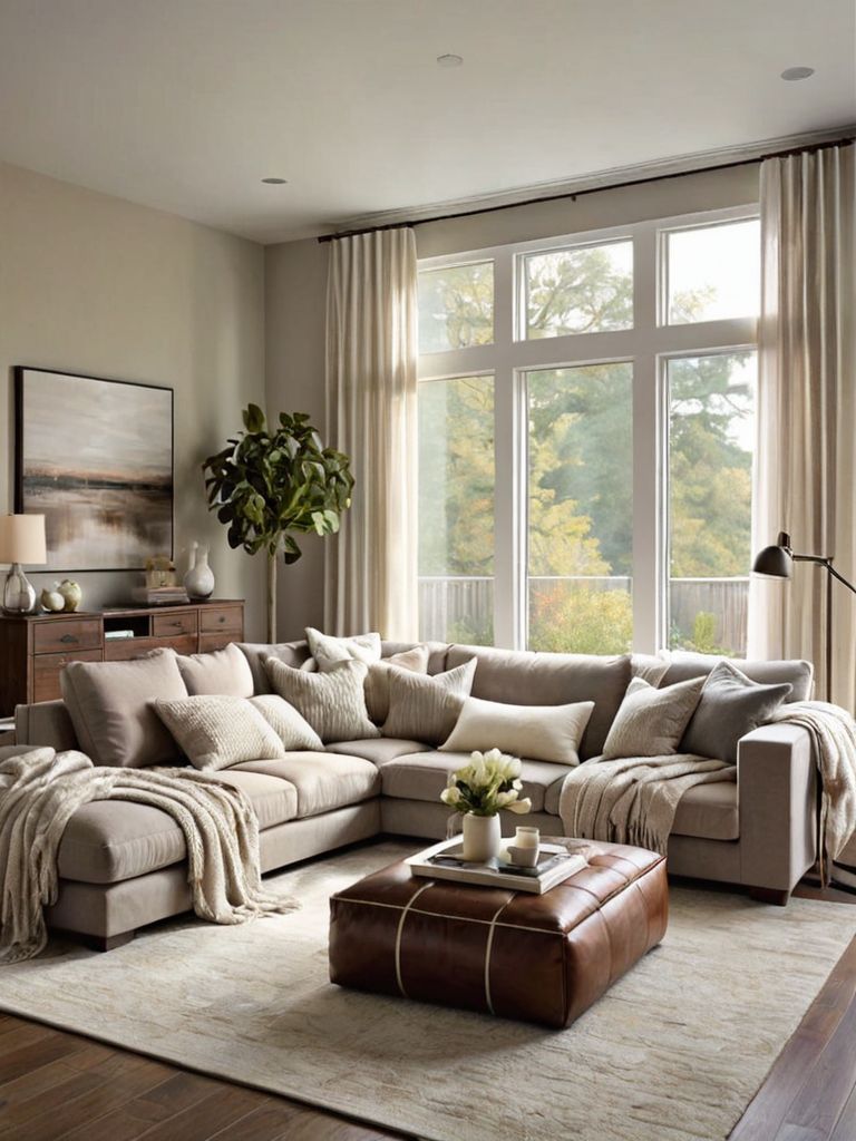 Minimalist sofa, Chunky knit throw, Patterned accent pillow, Modern side tables, Functional side tablesDescription
