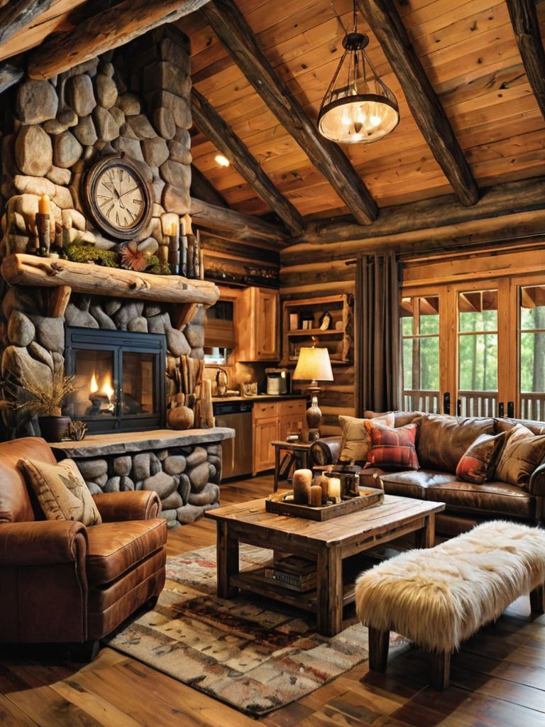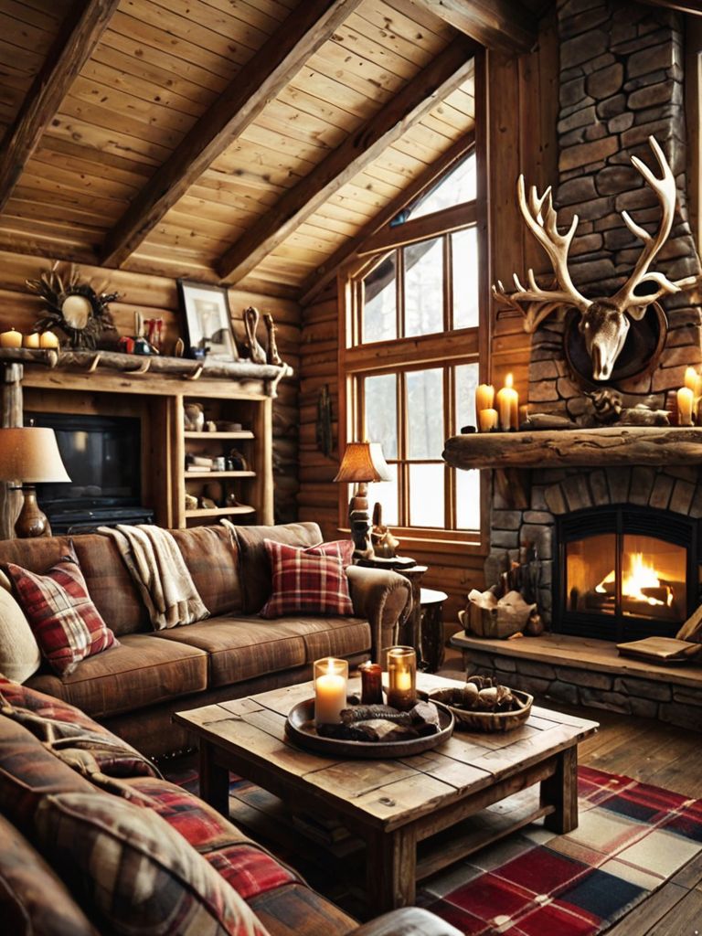 Dream Home Decor: Transform Your Space Into a Cozy Haven. Picture a rustic living room adorned with plush, oversized couches, adorned with soft, textured throw pillows in earthy tones. Complete the look with a statement piece like a distressed wooden coffee table, complemented by a vintage-inspired rug, creating a warm and inviting atmosphere for family and friends to gather.