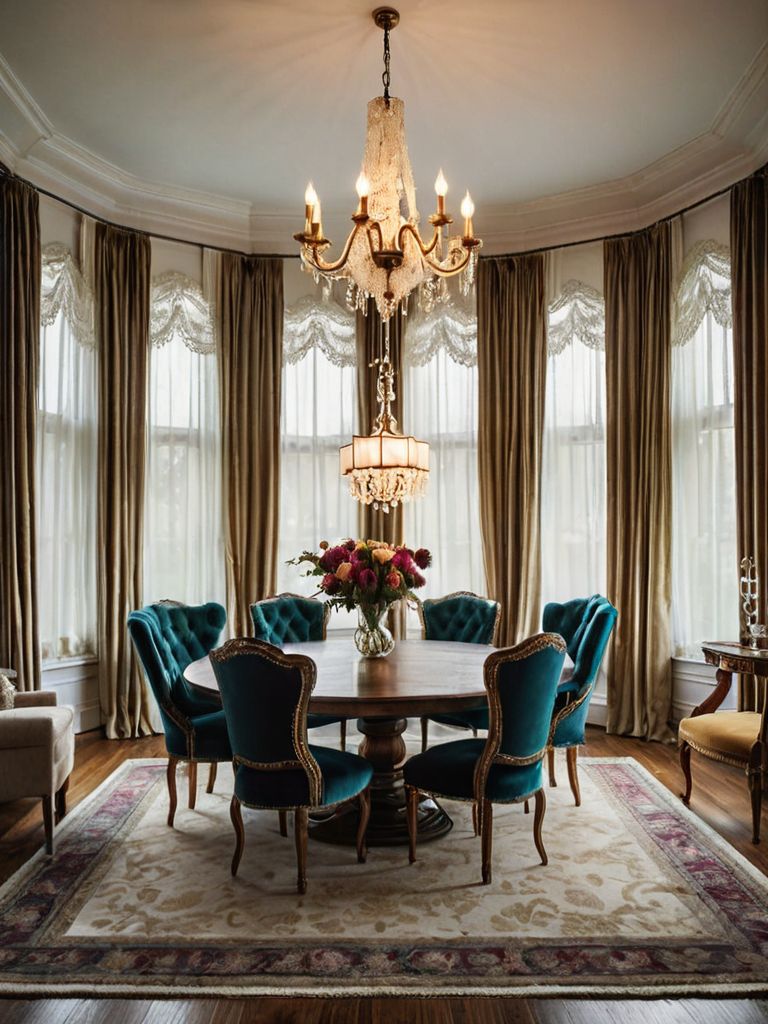 Velvet drapes, Gilded mirrors, Exquisite chandelier, Plush, oversized sectional sofa, Silk throw pillowsDescription