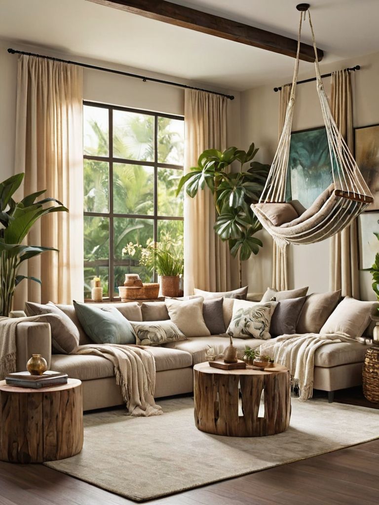 Rustic Farmhouse Chic: Transform your living space into a cozy retreat with this home decorating idea. Imagine walls adorned with distressed wooden panels, complemented by vintage touches like an antique chandelier and weathered wooden furniture. Accentuate the charm with plush pillows, soft throw blankets, and a faux fur rug to create a warm and inviting ambiance.