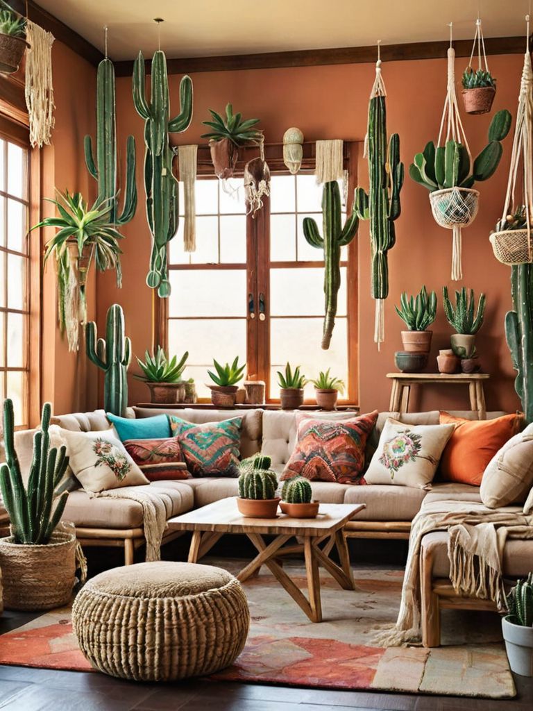 Delight in transforming your living space with a magnificent array of succulent plants adorning every surface, wall, and corner. Picture cascades of vibrant greenery cascading from macrame hangers, dangling gracefully above your cozy reading nook. Enjoy the soothing ambiance as natural light filters through sheer curtains, casting dappled shadows on lush, overflowing shelves of potted foliage, creating a tranquil oasis within your own home.
