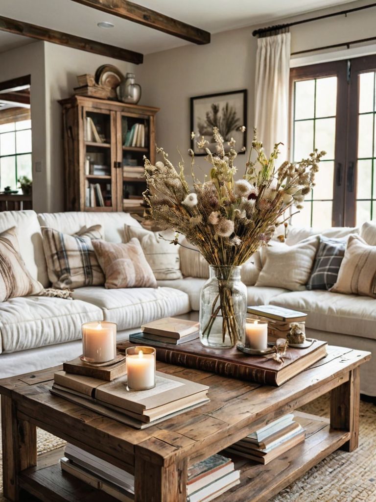 Recreate your living space with a charming farmhouse aesthetic. Transform your home into a cozy haven with rustic wooden furniture, vintage accents, and warm earthy tones. Incorporate elements like shiplap walls, distressed finishes, and antique décor to achieve a timeless farmhouse look that exudes warmth and comfort.