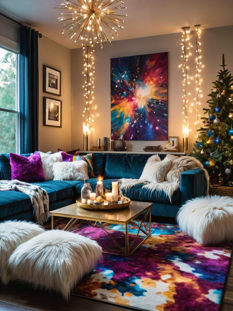Vibrant Botanical Paradise: Create an enchanting indoor jungle with an abundance of luscious green plants, hanging macrame planters, and cascading vines that transform your home into a tropical oasis. Accentuate the space with earthy rattan furniture, complemented by colorful patterned cushions and throws, inviting you to lounge and relax amidst the verdant foliage. Illuminate the room with warm, soft lighting, using fairy lights and strategically placed floor and table lamps to add a magical touch to your botanical haven.
