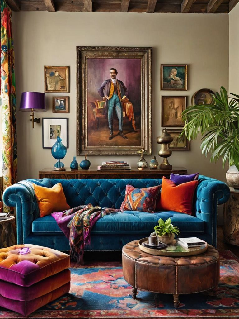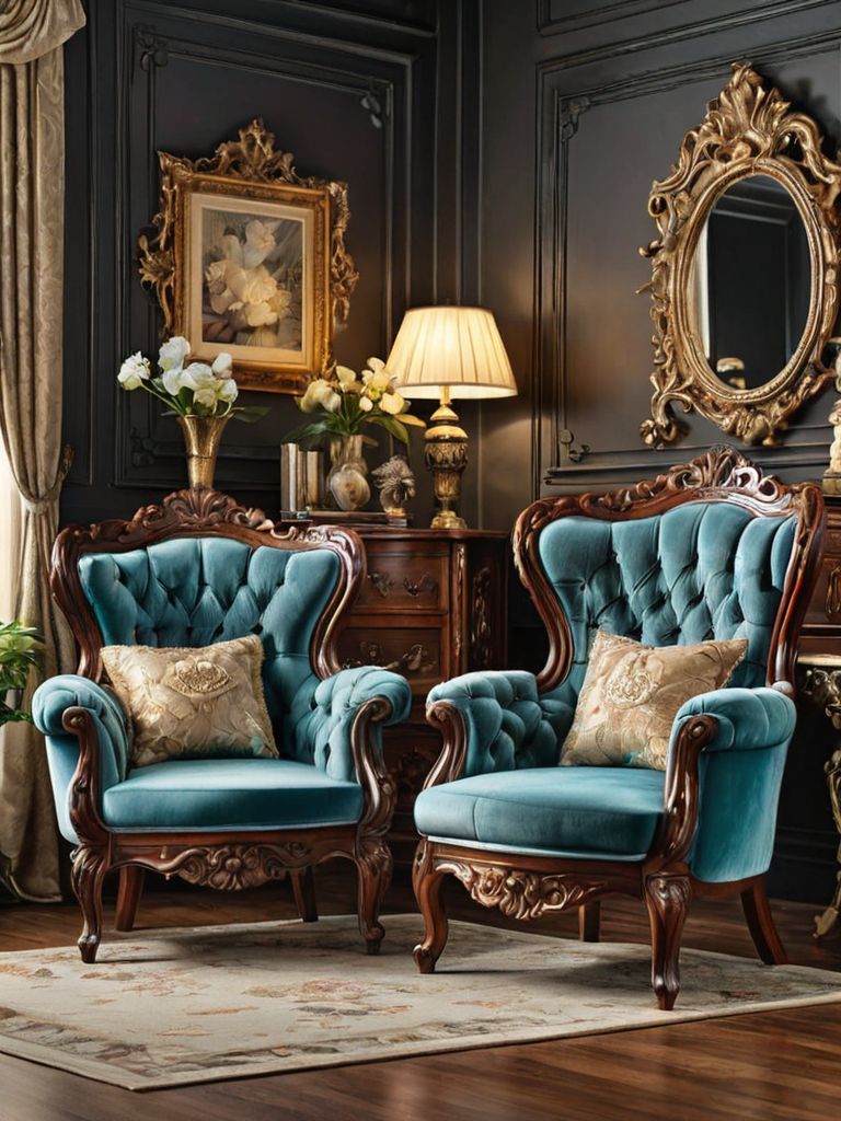 Velvet curtains, Cream-colored sofas, Antique teacups, Porcelain figurines, Vintage booksDescription