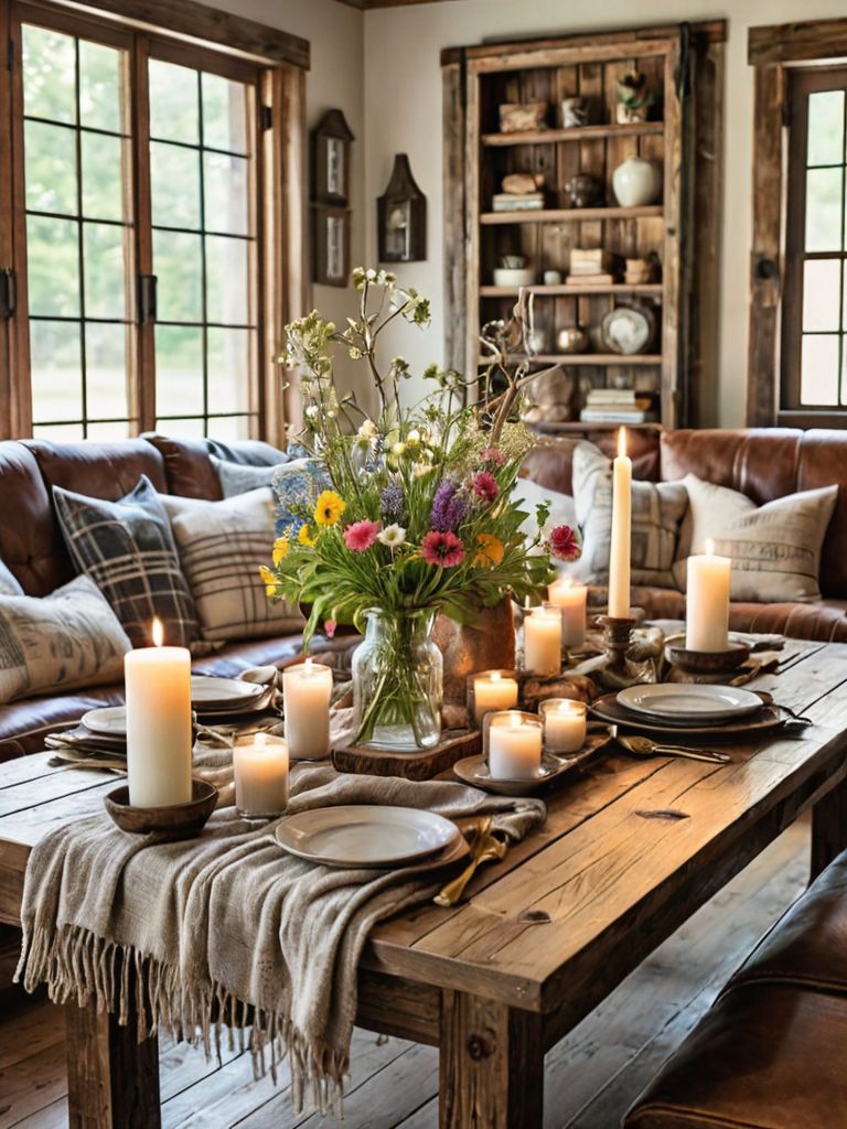 Rustic Haven: Transform your living space into a cozy retreat with a touch of rustic charm. Start by adorning your walls with weathered barn wood paneling and filling the room with plush, earth-toned furniture. Complete the look with distressed accessories, such as vintage lanterns and woven baskets, for a truly inviting atmosphere.