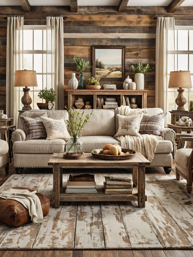 Rustic Charm: Create a cozy and inviting home with a touch of rustic charm. Incorporate reclaimed wood accents, such as a statement farmhouse dining table and distressed floating shelves, to add character and warmth to your space. Complete the look with soft earth-toned textiles, such as plaid throws and burlap curtains, for a cozy and inviting atmosphere that will make you never want to leave the comfort of your home.