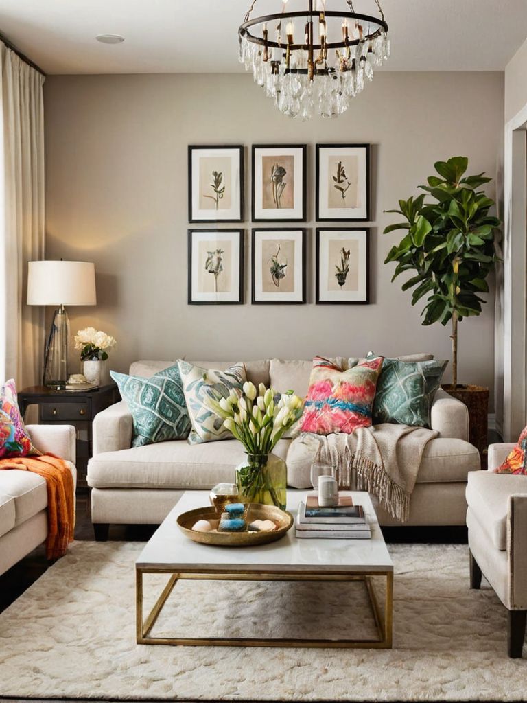 Living Room Transformation: Create a Cozy and Modern Retreat with Rustic Industrial Decor. Incorporate a statement wooden feature wall, reclaimed barn wood floating shelves, and a plush leather sectional sofa. Complement the rustic aesthetic with metal accents, vintage-inspired lighting fixtures, and cozy textiles such as fur throw blankets and patterned cushions.