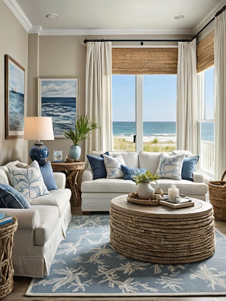 Cottage Style Home Decorating Ideas: Create a cozy and inviting living room by incorporating vintage pieces such as distressed wood coffee tables, soft floral upholstery, and antique picture frames hung on the walls. Embrace the charm of the countryside by adorning the walls with shiplap paneling painted in soothing pastel hues, and complete the look with lace curtains and a plush, overstuffed sofa adorned with plaid throw pillows. Bring nature indoors by placing potted plants and fresh flowers in wicker baskets, and introduce warmth to the space with an elegant fireplace mantel decorated with rustic lanterns and a collection of vintage books.