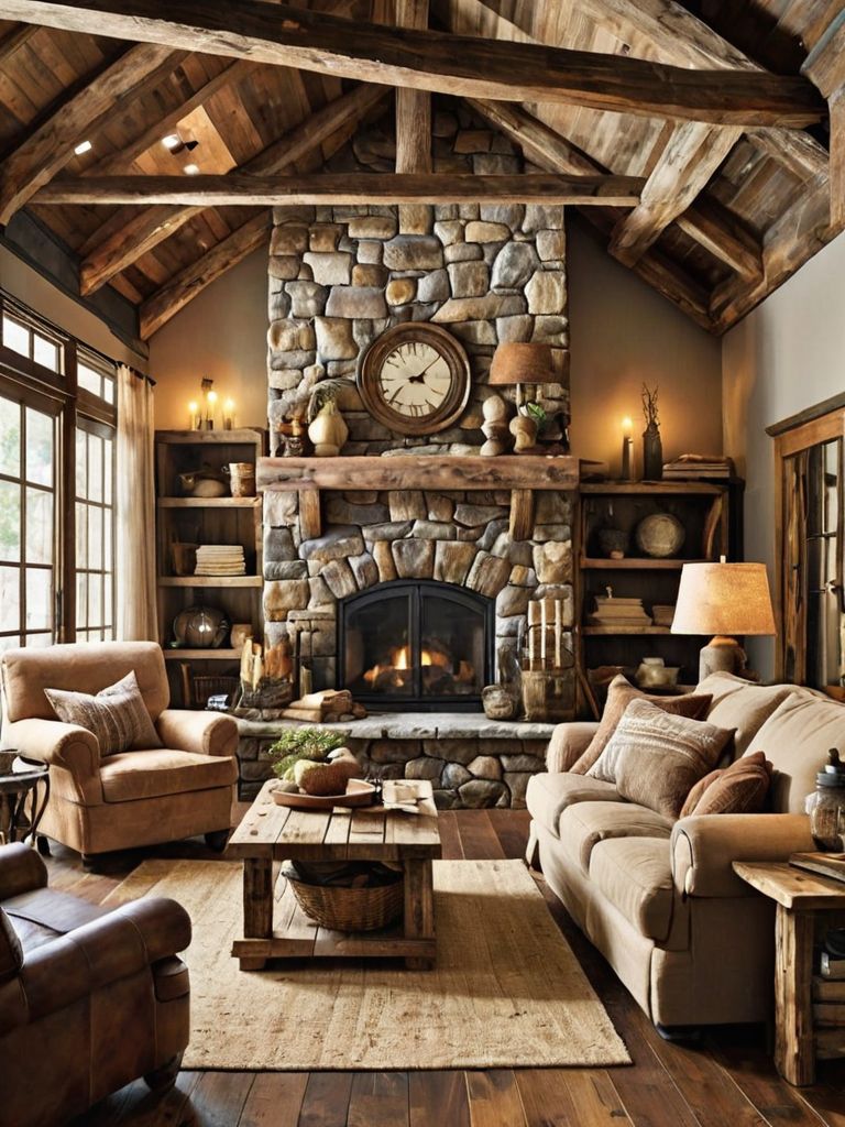 Rustic Charm: Transform your living space into a cozy haven with a touch of rural elegance. Add a reclaimed wood accent wall, complete with ornate metal shelves to showcase your collection of vintage mason jars. Tastefully sprinkle soft, earth-toned throw pillows and a plush faux fur rug to create a warm and inviting atmosphere that is sure to make you feel right at home.