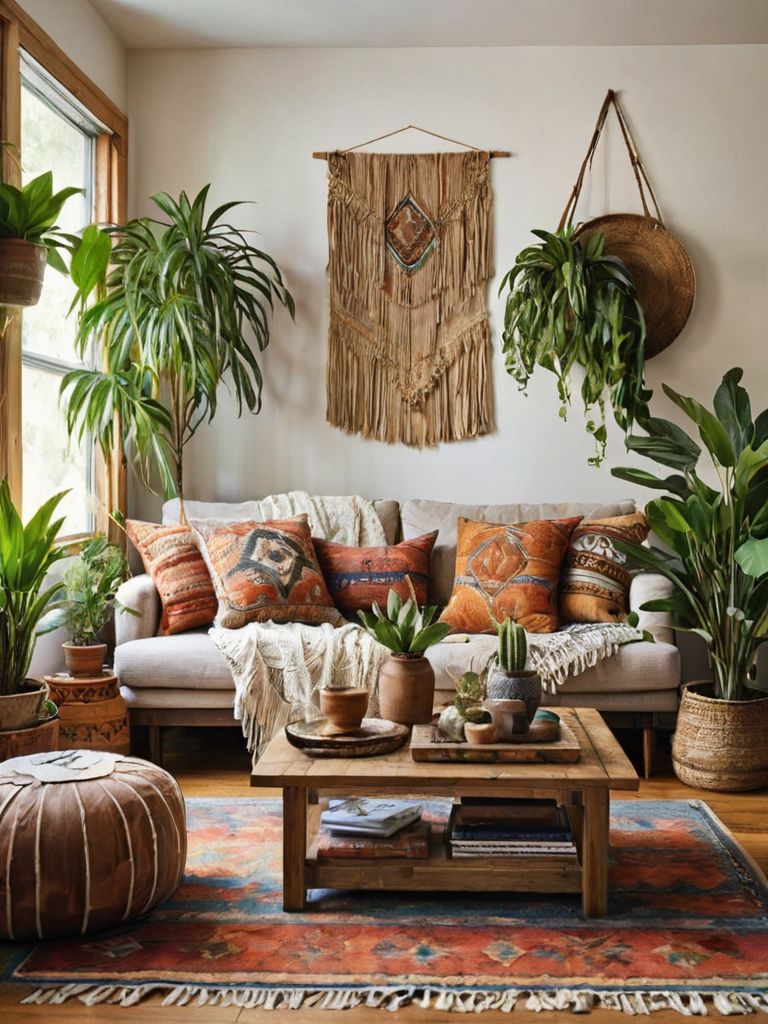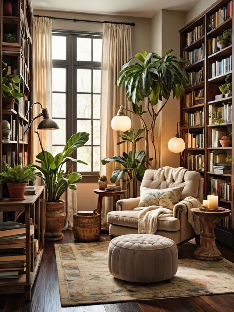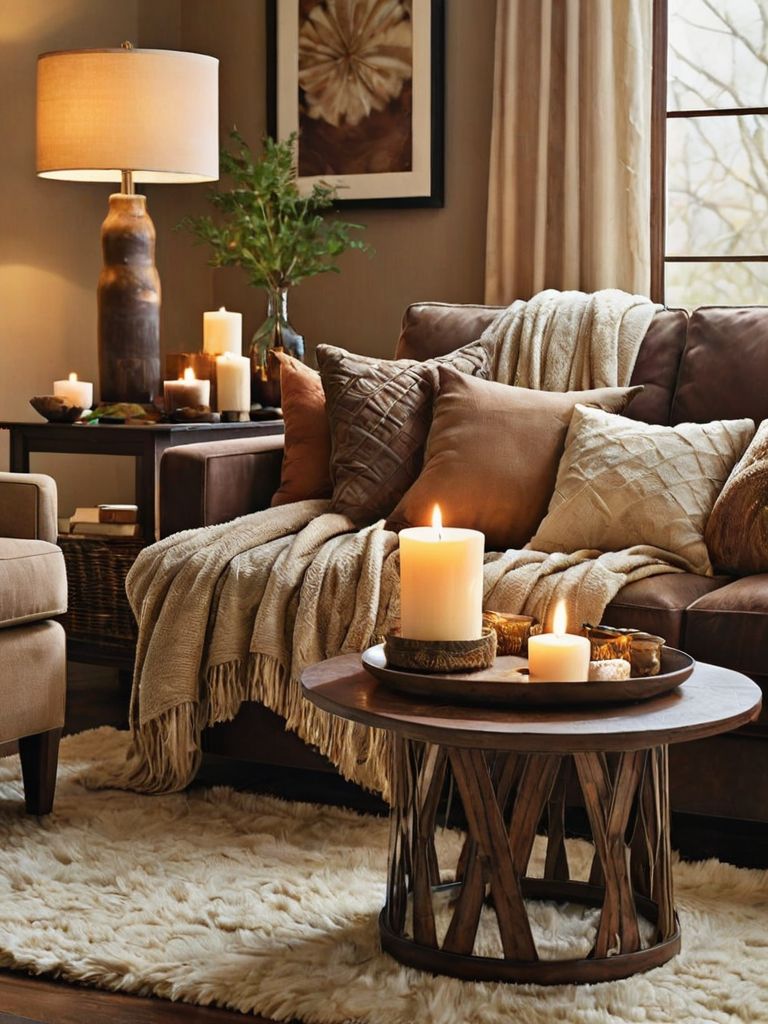 Rustic Elegance: Transform your living space into a cozy oasis with a touch of sophistication. Incorporate warm, earthy tones such as mahogany and copper, complemented by textured fabrics like linen and velvet. Introduce natural elements like reclaimed wood accents and potted plants, creating a serene ambiance that seamlessly combines rustic charm with modern elegance.