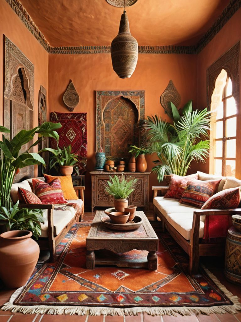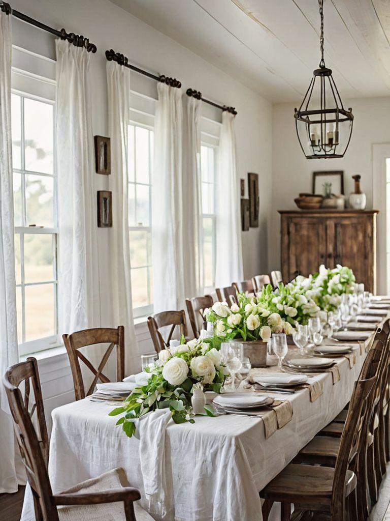 Weathered wood coffee table, Vintage botanical prints, Linen sofa, Wrought iron accents, Reclaimed furnitureDescription
