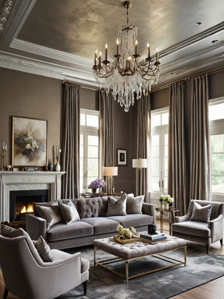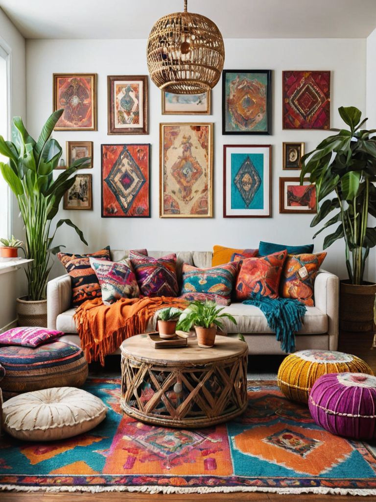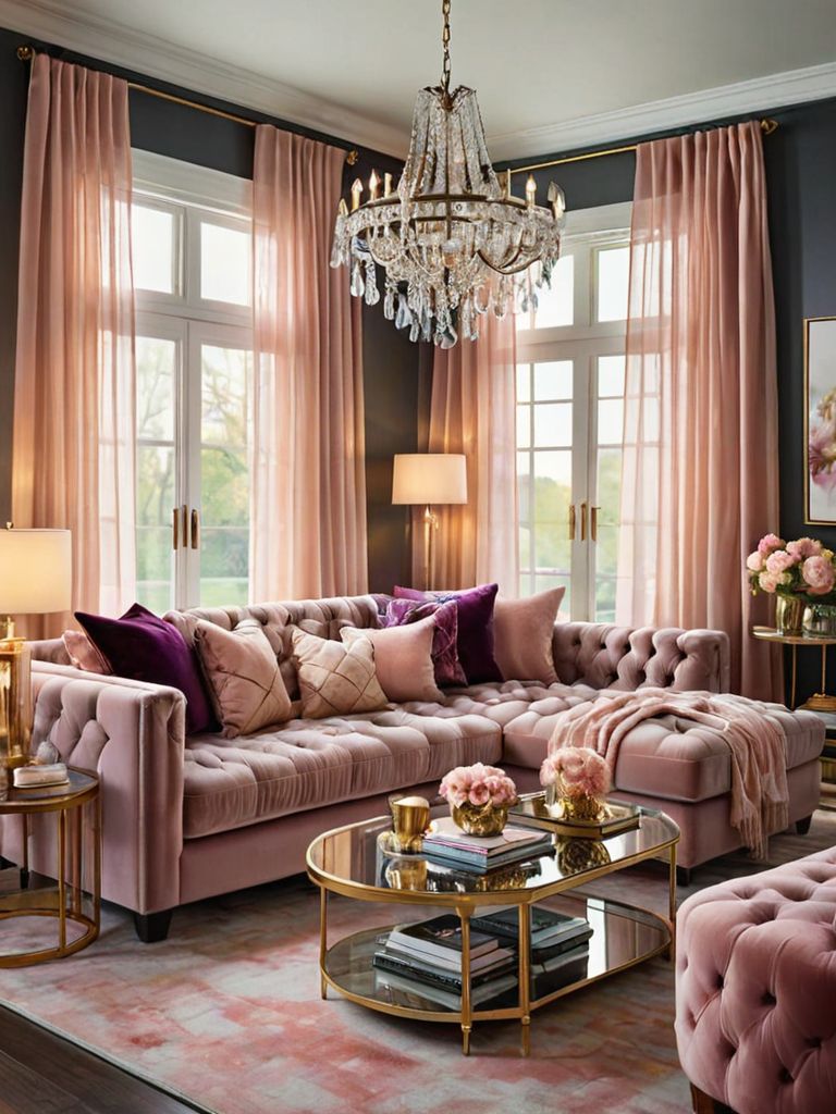 Furniture: Imagine a cozy living room with a vintage-inspired velvet sofa, adorned with plush throw pillows in rich jewel tones. The room is illuminated by a chic globe pendant light hanging overhead, casting a warm and romantic glow. A rustic coffee table, made from reclaimed wood, completes the inviting atmosphere, offering a charming spot to display your cherished books and cherished photograph albums.