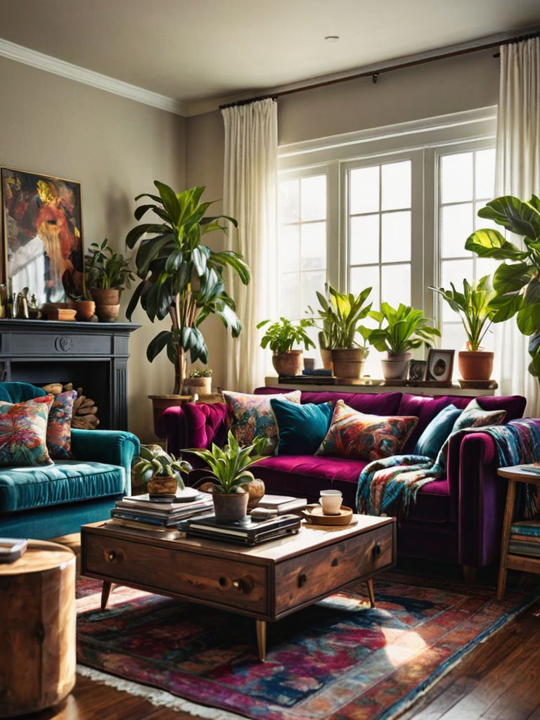 Furniture: Imagine transforming your living room into a cozy and elegant retreat with a combination of plush velvet sofas and armchairs, complemented by a sleek marble coffee table and a statement chandelier that illuminates the space. Surround the room with floor-to-ceiling bookshelves filled with your favorite novels and accentuate the walls with large abstract paintings for a touch of modern artistry.