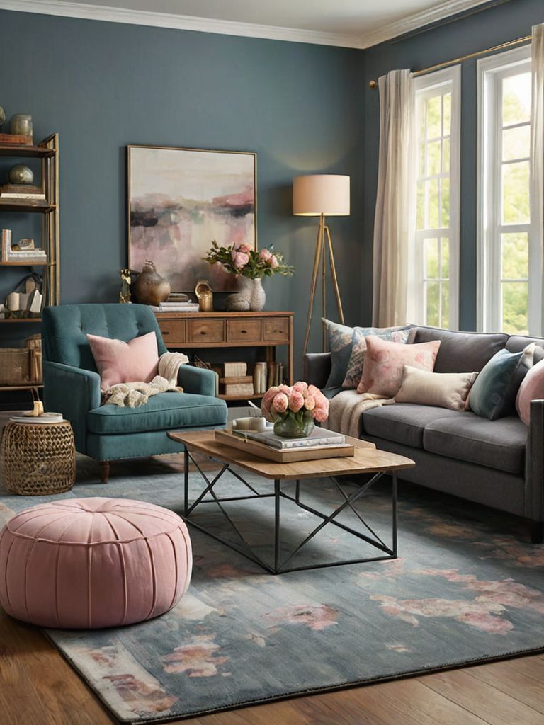 White paint, Modern furniture, Neutral-colored accessories, Throw pillows, Contemporary artDescription