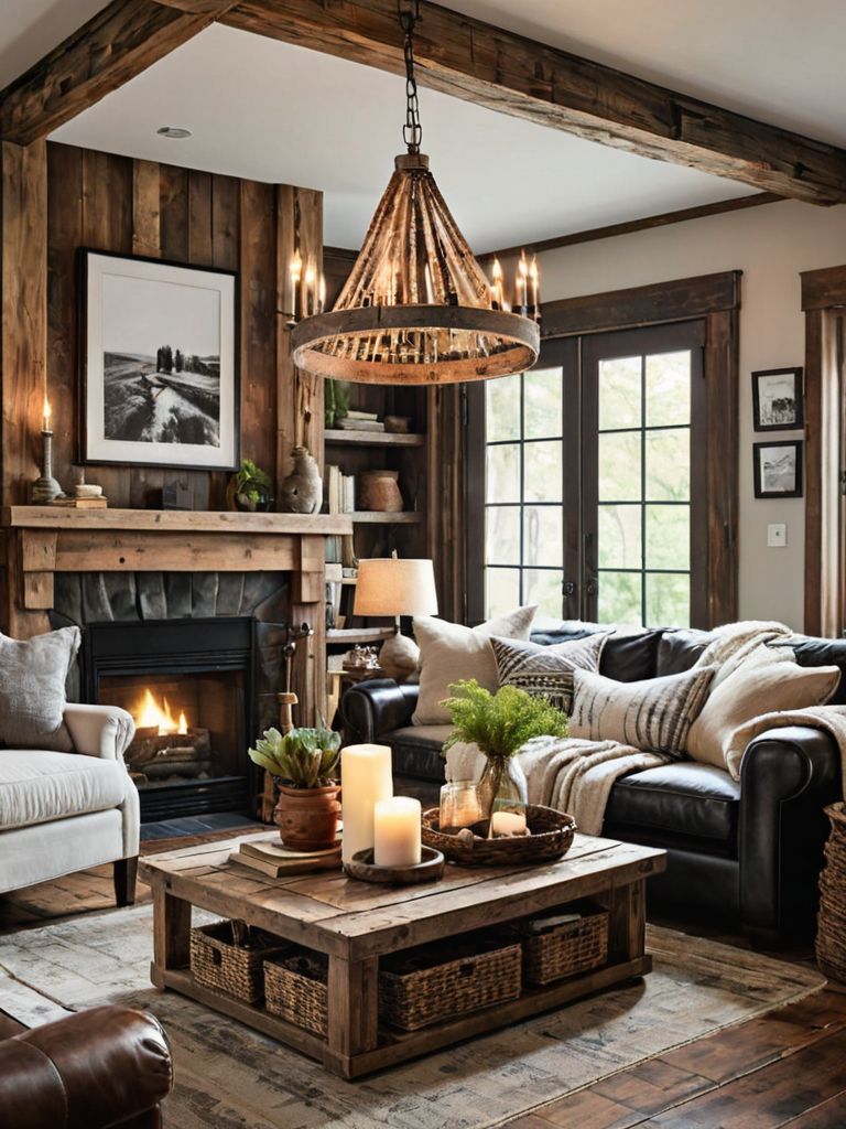 Bohemian-inspired rug, Mismatched throw pillows, Handcrafted artwork, Vintage pieces, Oversized floor mirrorDescription