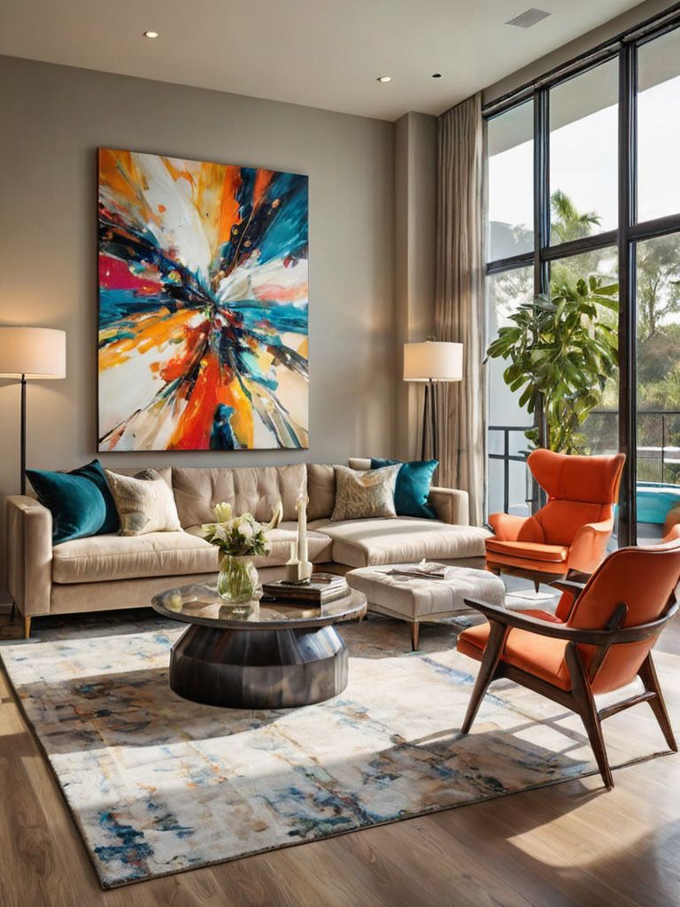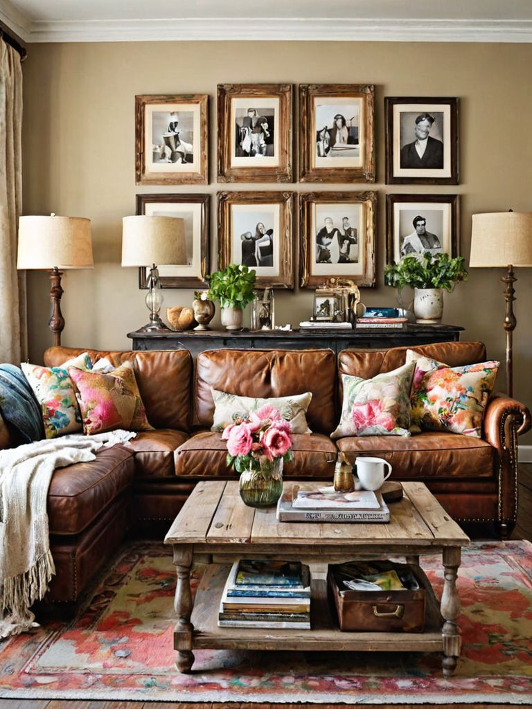 Rustic Charm: Transform your living space into a cozy cabin retreat with earthy tones and natural textures. Create a focal point by incorporating a reclaimed wood coffee table, adorned with mason jar candle holders and a vintage map of the outdoors. Complete the look with plush faux fur throws, plush rugs, and wall-mounted antlers that capture the essence of rustic elegance.
