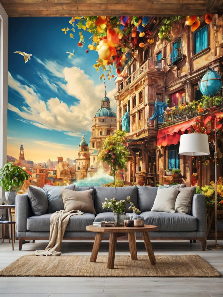 Colorful Oasis: Create a vibrant and cozy living room by incorporating bold, eye-catching colors and patterns. Start by painting the walls a deep, jewel-toned blue and complement the color scheme with vibrant accent pillows and throw blankets in rich shades of fuchsia and gold. Complete the look with unique wall art featuring abstract designs and funky accessories like velvet poufs and a Moroccan-inspired area rug.
