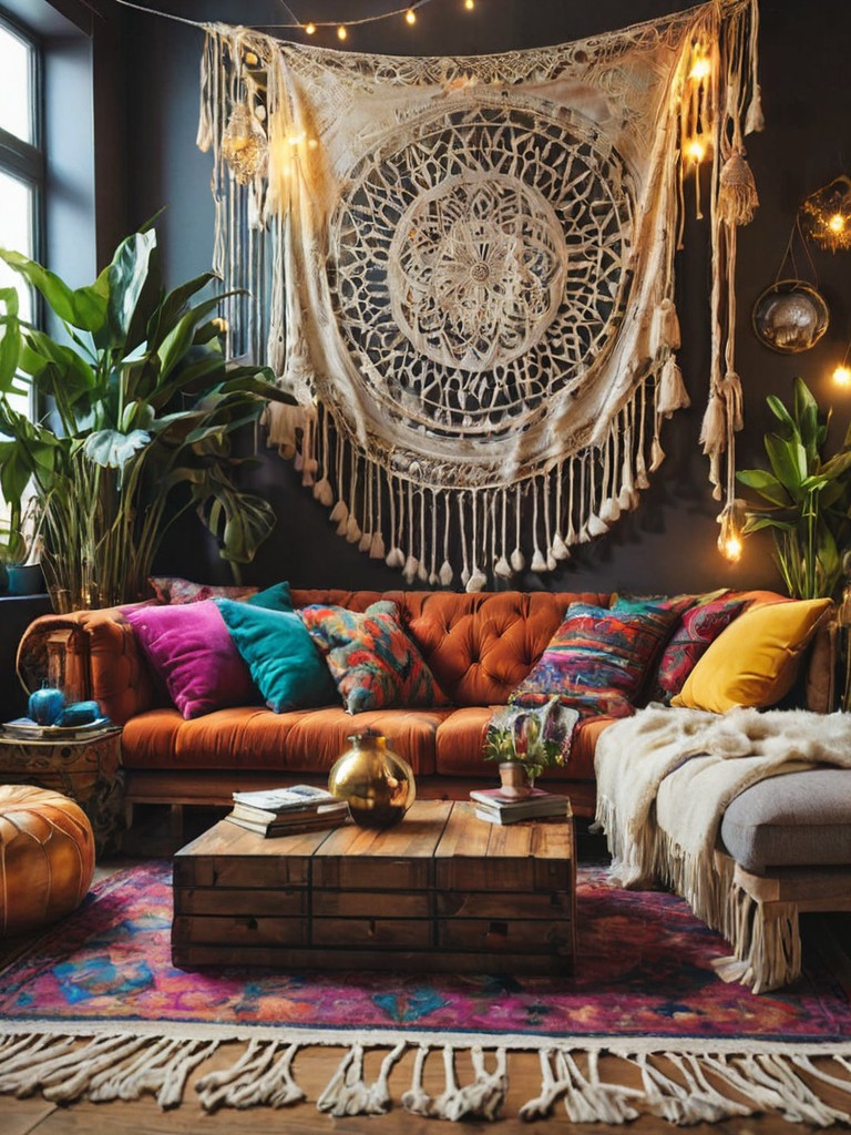Rustic Cabin Retreat: Create the cozy and inviting atmosphere of a rustic cabin with this home decorating idea. Incorporate earthy tones such as deep greens and warm browns to bring the outdoors inside. Complete the look with wooden furniture, antler accents, and cozy plaid fabrics for a truly rustic and enchanting space.