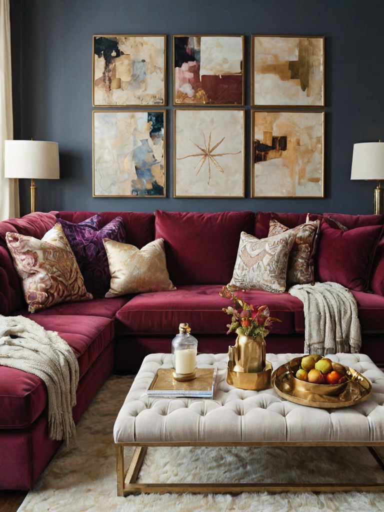 Rustic Farmhouse: Create a cozy and inviting living space with a rustic farmhouse theme. Start with a reclaimed wood coffee table, adorned with a soft, neutral-colored rug. Add in comfortable linen sofas, accessorized with plaid throw pillows and a chunky knit blanket, to complete the look.