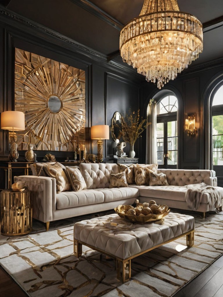 Living Room Transformation: Create a Cozy and Chic Retreat Picture stepping into a transformed living room, where the soft glow of warm lighting envelops you in a sense of tranquility. A plush, velvet sectional sofa serves as the centerpiece, adorned with an array of decorative throw pillows in jewel-toned hues. Above the sofa, an impressive gallery wall showcases an eclectic mix of vintage art and whimsical prints, creating a personalized touch that reflects your unique style and interests.