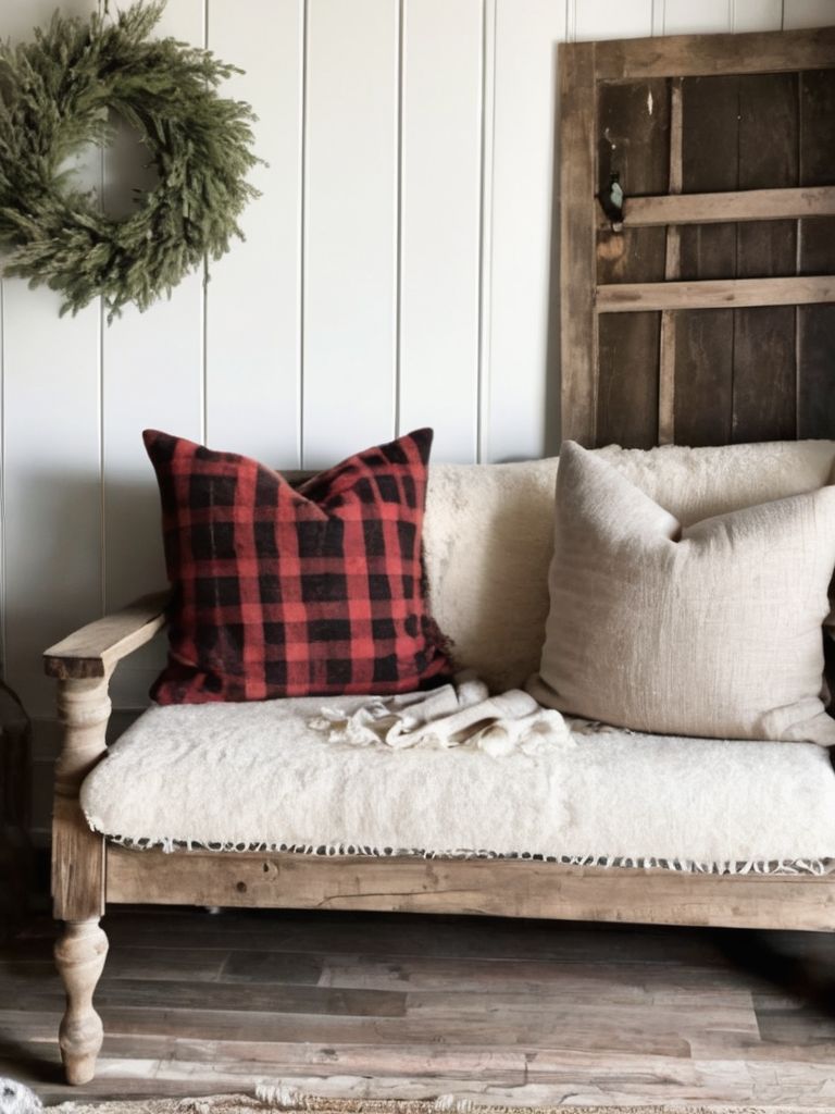 Weathered wood furniture, Stone accents, Earthy-toned decor, Soft lighting, Plush textilesDescription