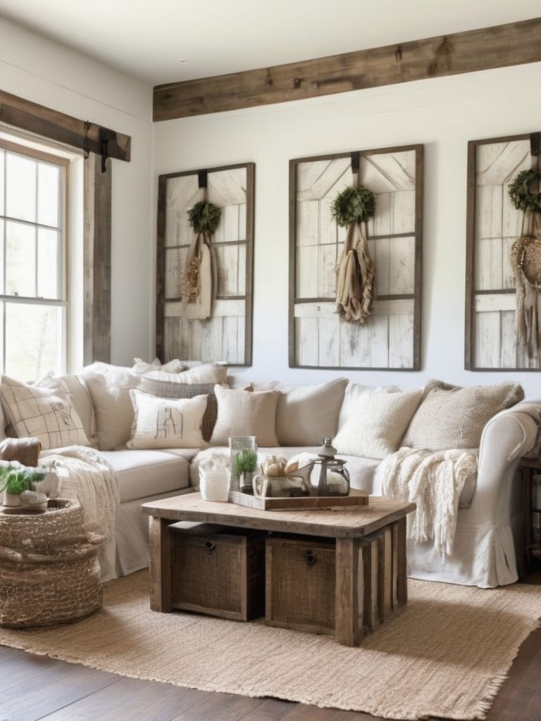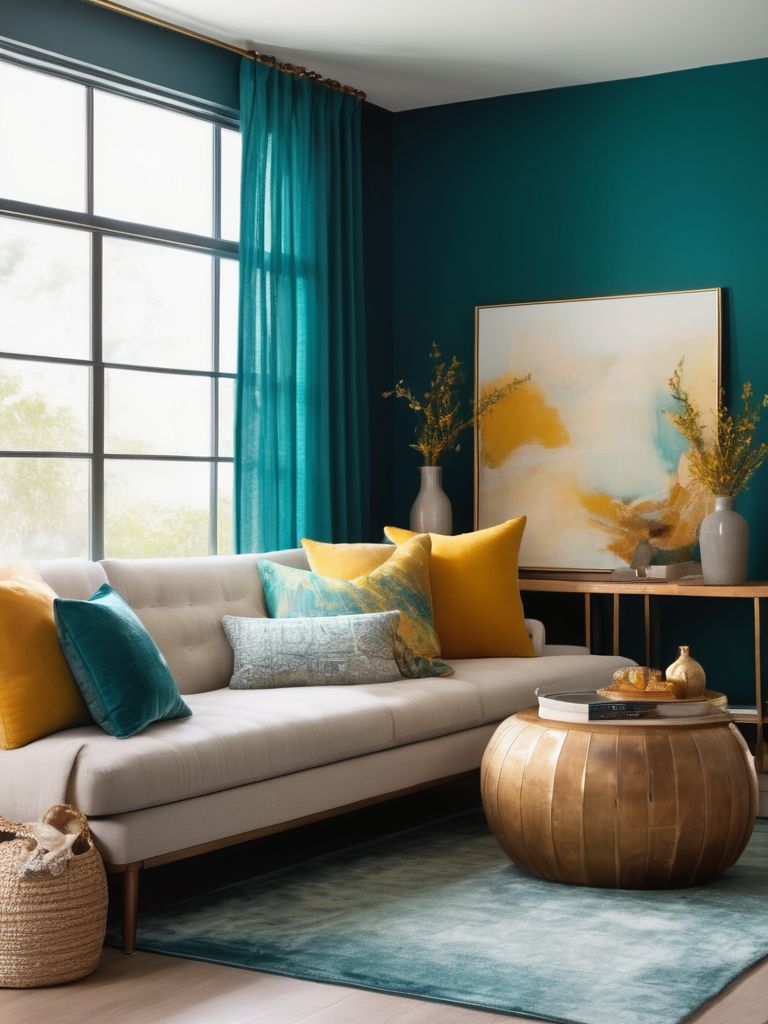 Furniture: Design your dream living room with a cozy sectional sofa, adorned with plush throw pillows in a mix of earthy tones and textures. Accentuate the space with a sleek wooden coffee table, highlighting the natural beauty of the wood grain. Complete the look with a statement floor lamp, casting a warm ambient glow throughout the room.
