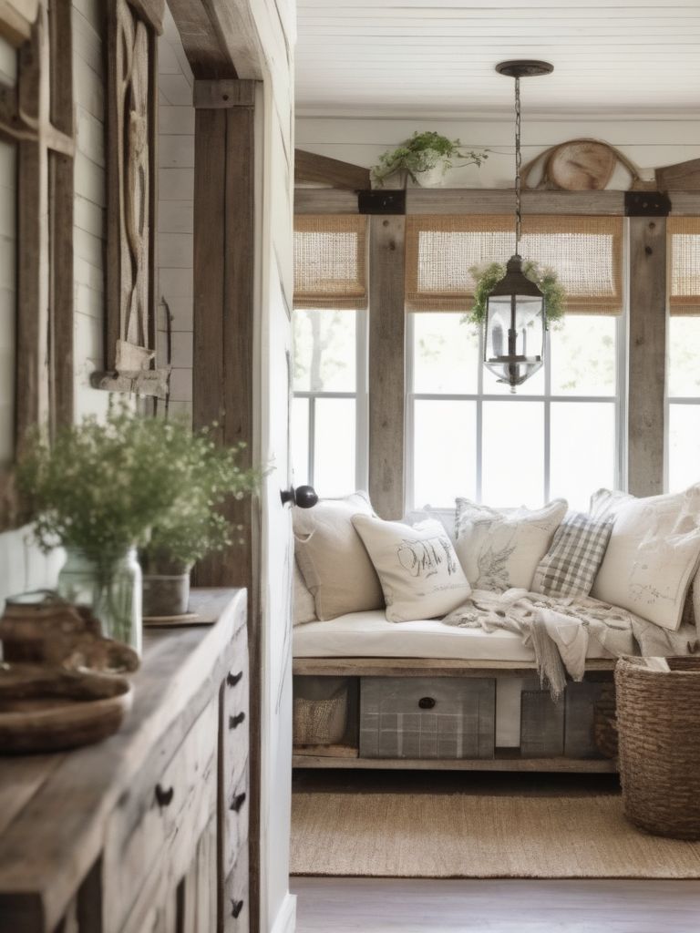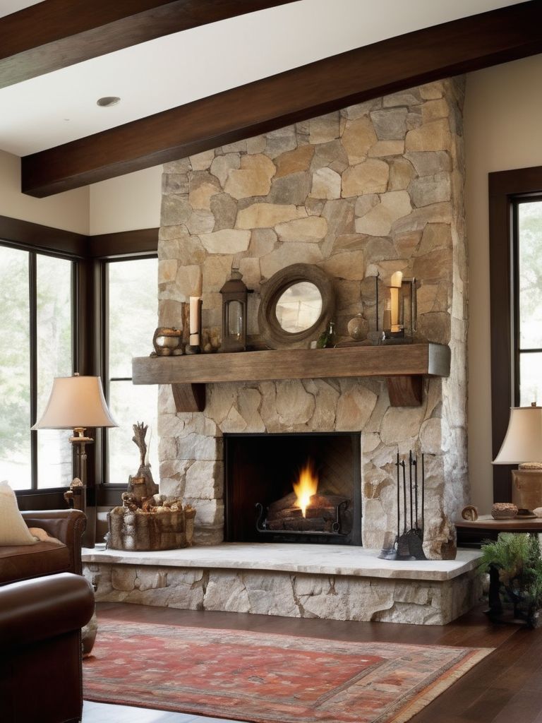 Oversized sectional sofa, Vintage-inspired wallpaper, Reclaimed wood coffee table, Elegant chandelier, Plush area rugDescription