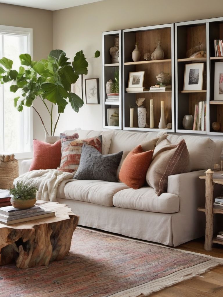 Floral Haven: Design the perfect botanical sanctuary in your home with this home decorating idea. Fill your living space with an abundance of lush greenery, from hanging planters cascading from the ceiling to potted plants on sleek wooden shelves. Create a serene atmosphere with soft neutral tones, complemented by pops of color through vibrant floral prints on throw pillows and wall art.
