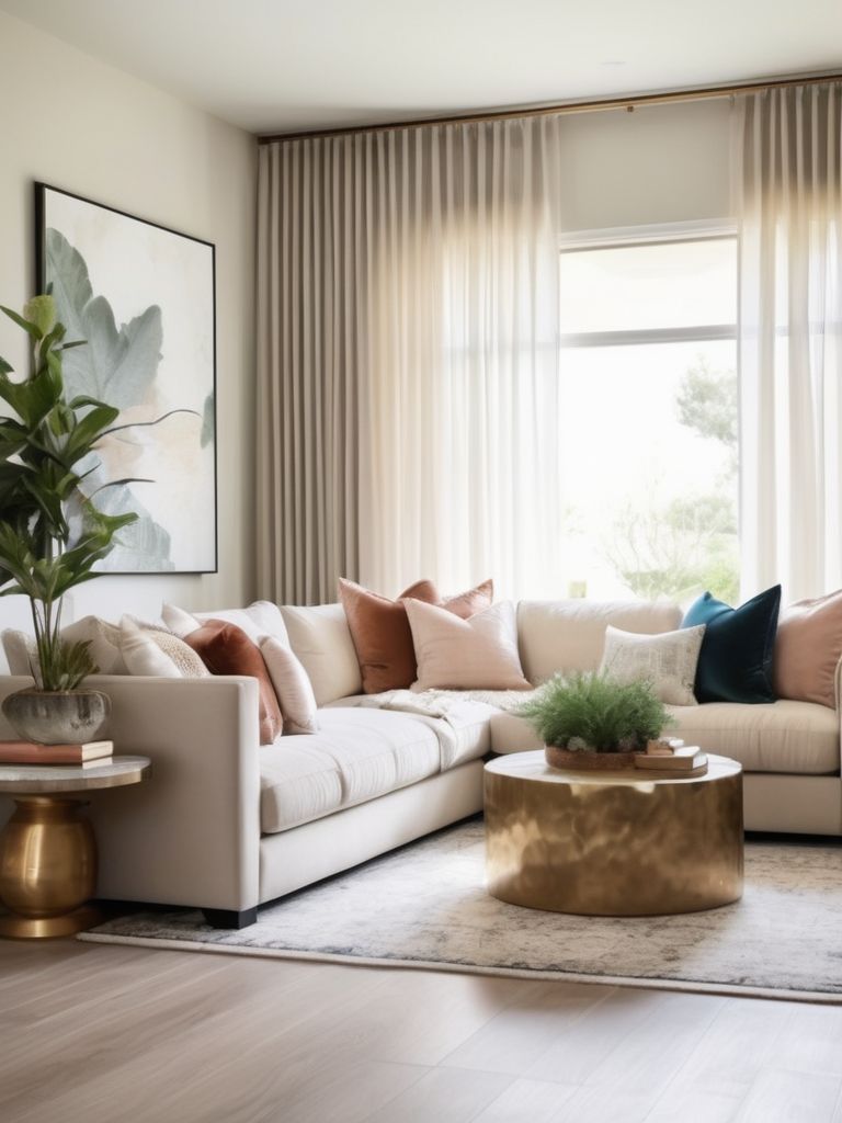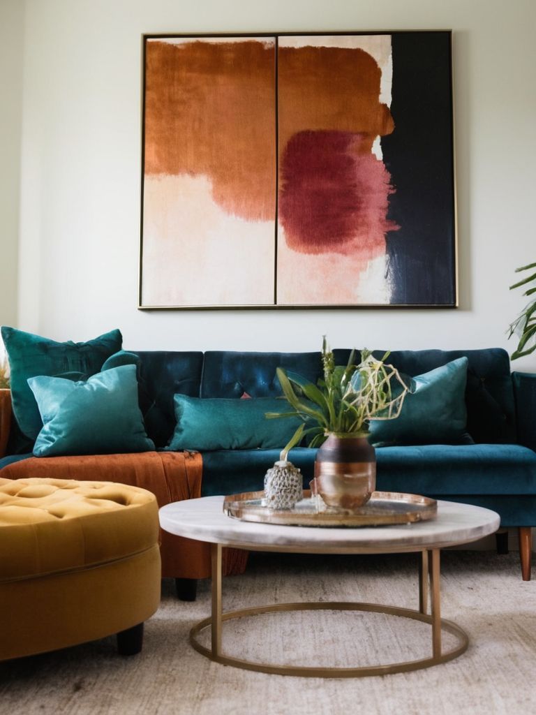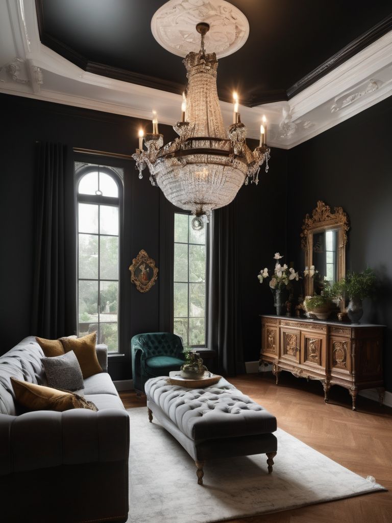 Lavish Living: Create a chic and inviting living room oasis with a floral-inspired aesthetic. Start by adorning the space with a vibrant, oversized floral wallpaper that sets the tone for the entire room. Complement this bold statement with a sleek, velvet sofa in a soft blush hue and arrange a collection of real and faux potted plants strategically around the room, bringing a sense of nature indoors.