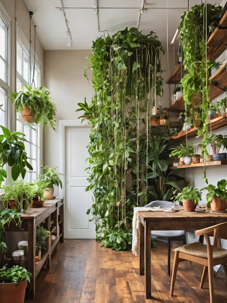 Lush Greenery: Transform your living space into a vibrant oasis by incorporating an abundance of lush greenery. Hang cascading vines from high ceilings, place potted plants of varying sizes on shelves and tables, and create a vertical garden on a bare wall. With the soothing presence of nature, your home will radiate freshness and serenity.