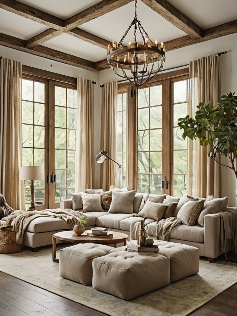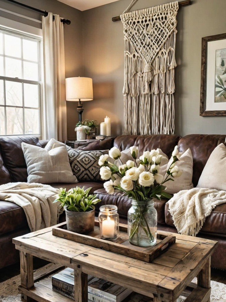 Rustic Farmhouse: Transform your living space into a cozy and inviting haven with the charm of a rustic farmhouse. Embrace the natural elements by incorporating weathered wood accents, distressed furniture, and vintage-inspired decor. Create a warm and welcoming atmosphere by layering soft textiles, such as plaid throws and fluffy pillows, and add a touch of nostalgia with mason jar candle holders and country-style floral arrangements.