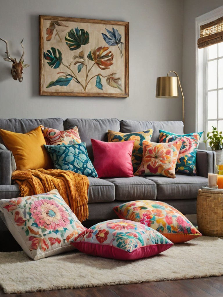Pillow Paradise: Create a cozy and inviting atmosphere with a burst of colorful and patterned throw pillows. Mix and match different shapes, sizes, and textures to add visual interest to your sofas and armchairs. From plush velvet to fun and quirky prints, these statement pillows will transform your living space into a haven of comfort and style.