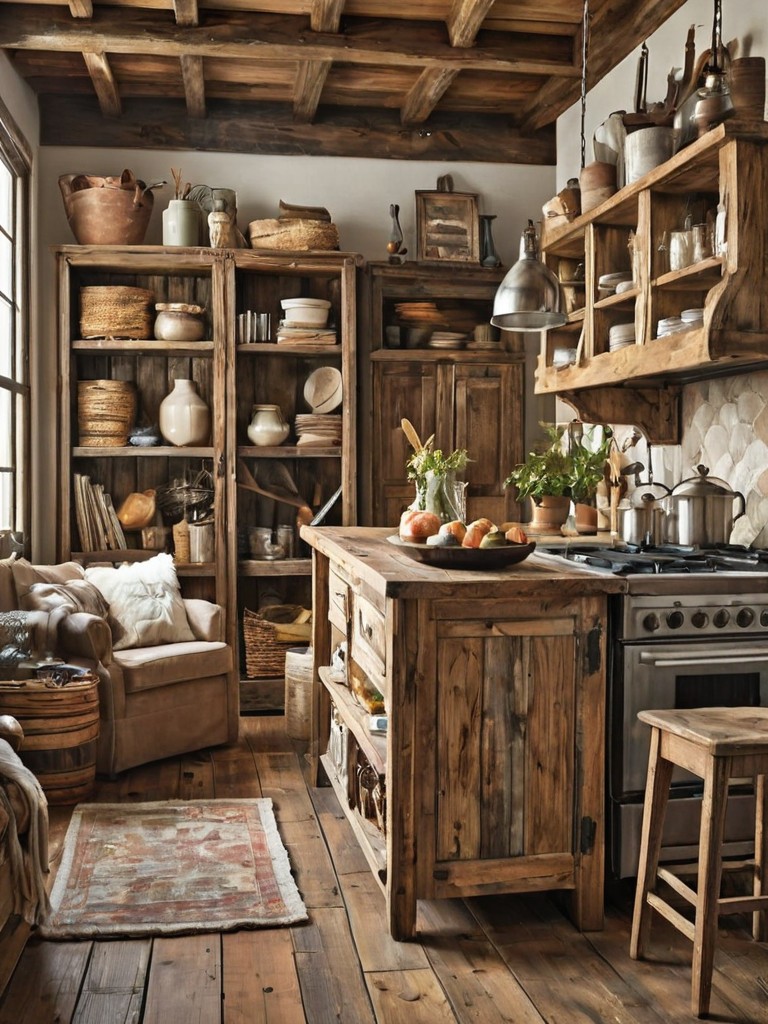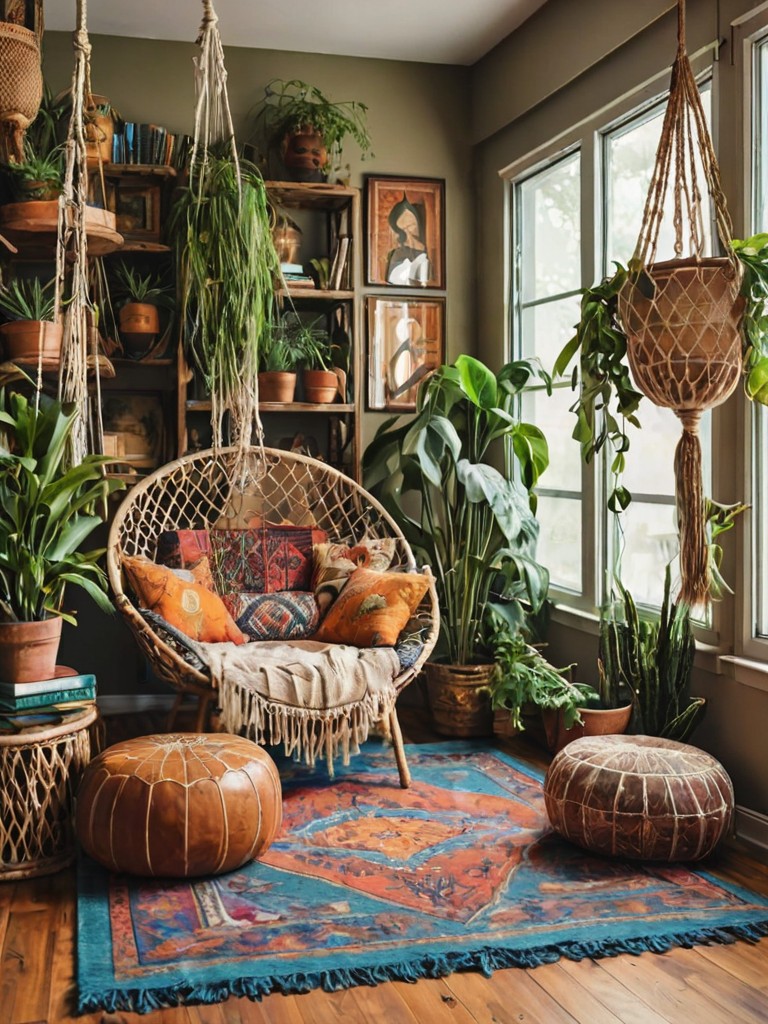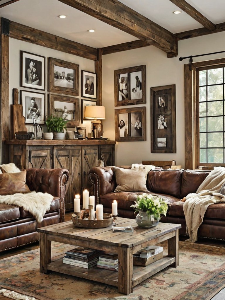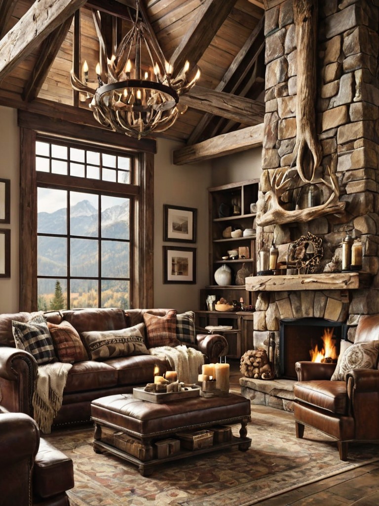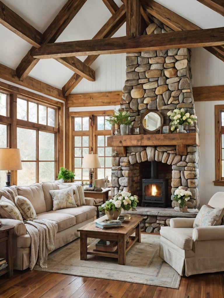 Oversized sectional sofa, Soft, pastel-colored blankets, Hanging flower baskets, Rustic wooden beams, Natural stone fireplaceDescription