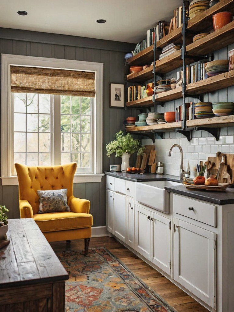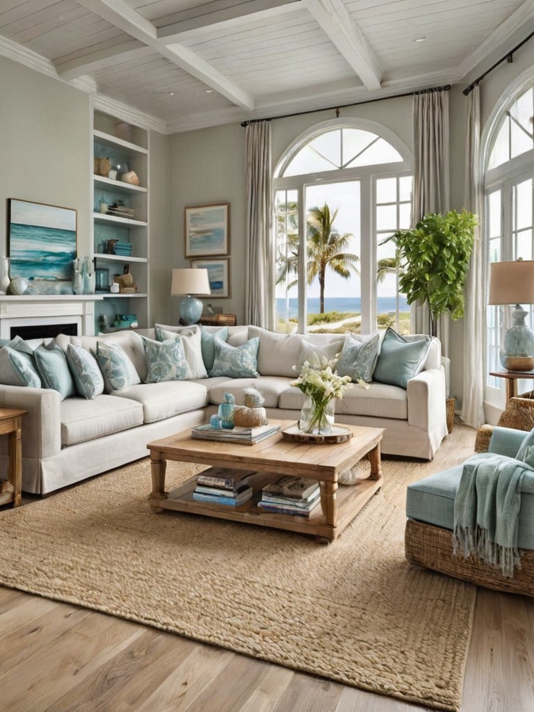 Elegantly Tranquil Home Decor: Create a serene sanctuary with a harmonious blend of natural textures and muted colors. Start by introducing a statement piece, such as a handcrafted wooden coffee table with intricate carvings, to anchor the space. Layer soft textiles, like linens and silk drapes, to evoke a sense of tranquility, while incorporating hints of greenery with potted plants and botanical prints to connect with nature.