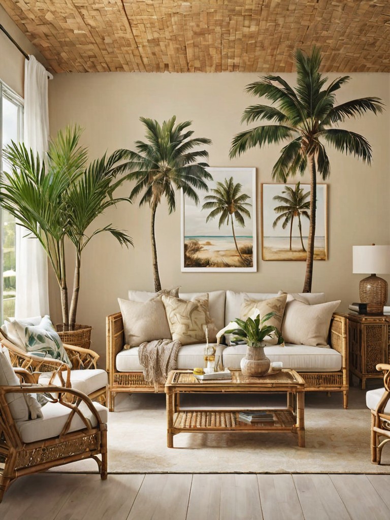 Breezy Retreat: Transform your living room into a coastal oasis with this beach-inspired home decorating idea. Start by painting the walls a serene shade of seafoam green, and adorn them with large-scale nautical artwork. Complete the look with a plush white sectional sofa, decorative throw pillows in shades of aquamarine and sandy beige, and driftwood-inspired coffee table.