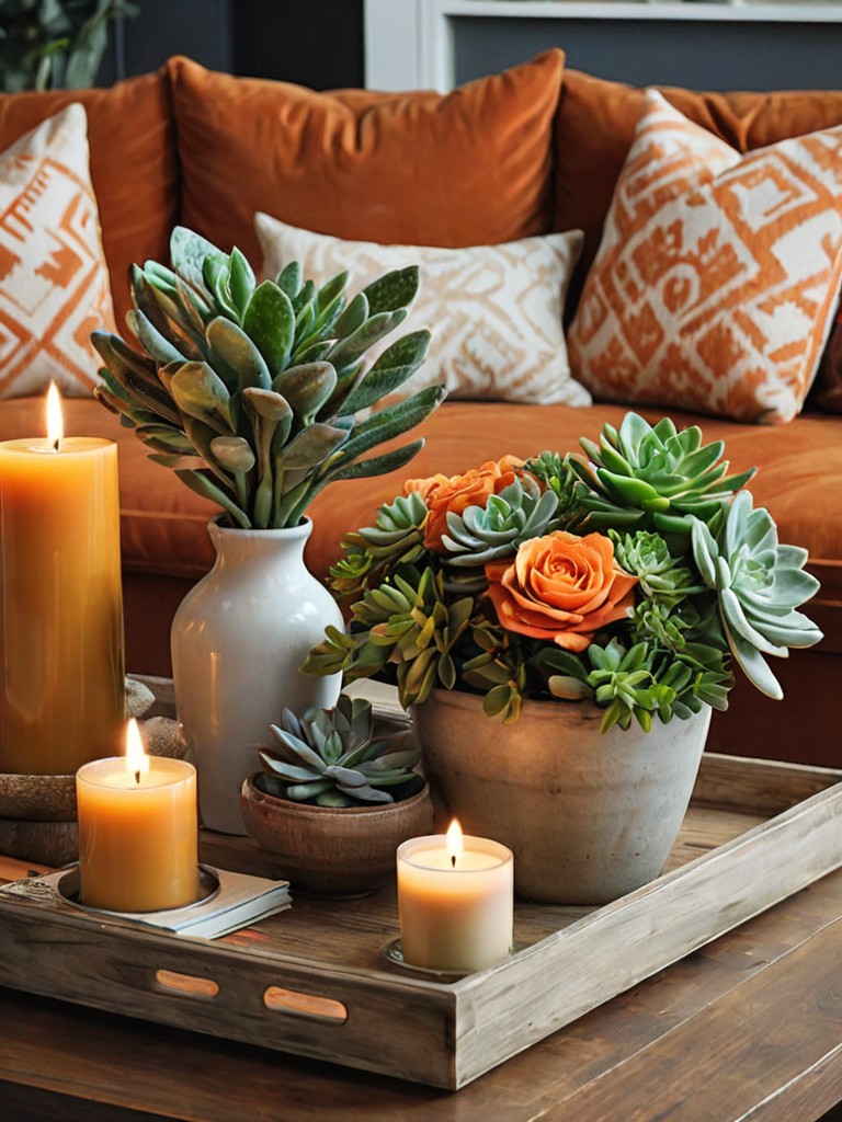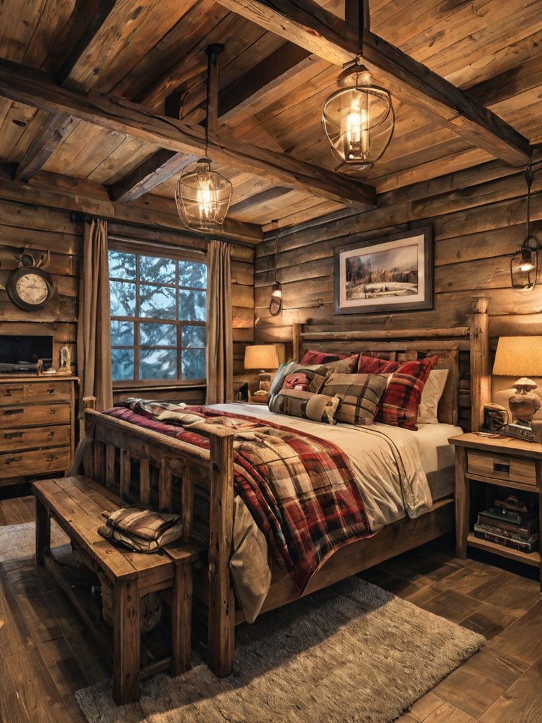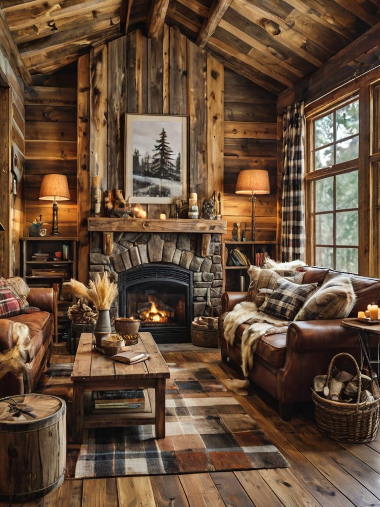 Rustic Chic: Create a cozy retreat with warm earth tones and nature-inspired elements. Start by incorporating a reclaimed wood feature wall, complete with floating shelves to display your collection of vintage mason jars filled with fresh flowers. Enhance the ambiance with soft, textured throws and pillows in neutral colors, and complete the look with copper accents and a statement chandelier made from repurposed materials.