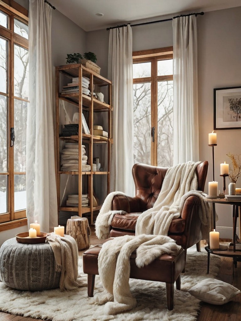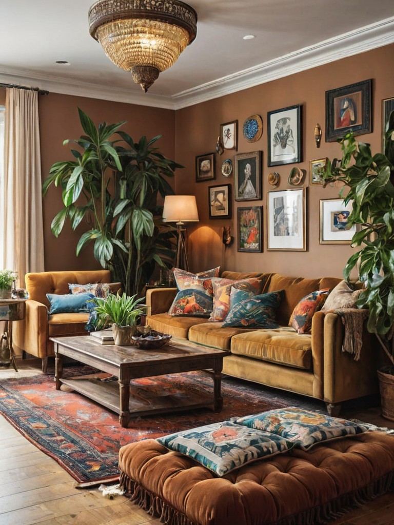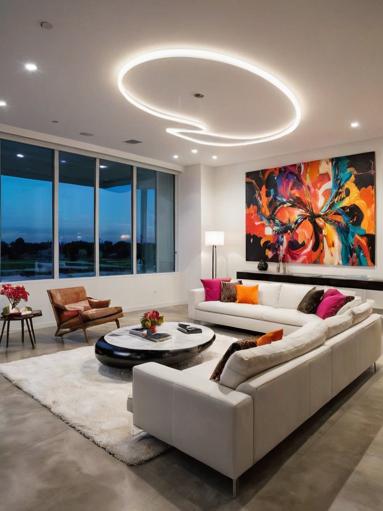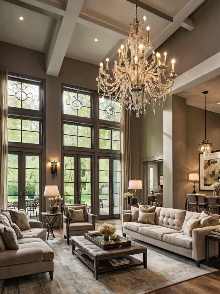 Lighting: Imagine walking into a living room where soft, warm light fills the space, creating a cozy and inviting atmosphere. A statement chandelier hangs gracefully from the high ceiling, casting a delicate glow on the elegant furniture. Accented with floor lamps strategically placed throughout the room, this home decorating idea showcases the perfect balance of functionality and aesthetic appeal.
