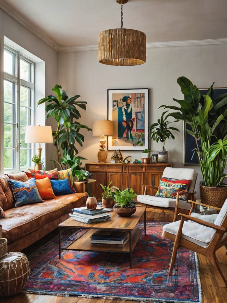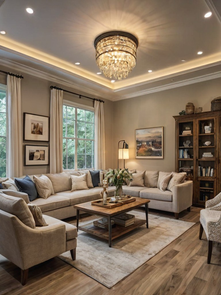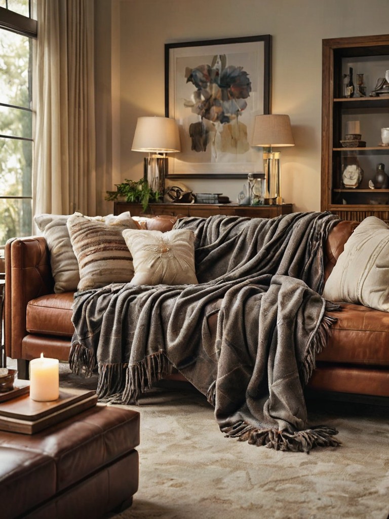 Living Room Makeover: Create a cozy and inviting space by incorporating a mix of earthy tones and textures. Start by adding a plush, oversized sectional sofa in a warm neutral color, paired with a rustic wooden coffee table and a soft, shaggy area rug. Complete the look with decorative pillows and throws in rich, autumn-inspired hues, along with a gallery wall of nature-inspired artwork to bring the outdoors in.