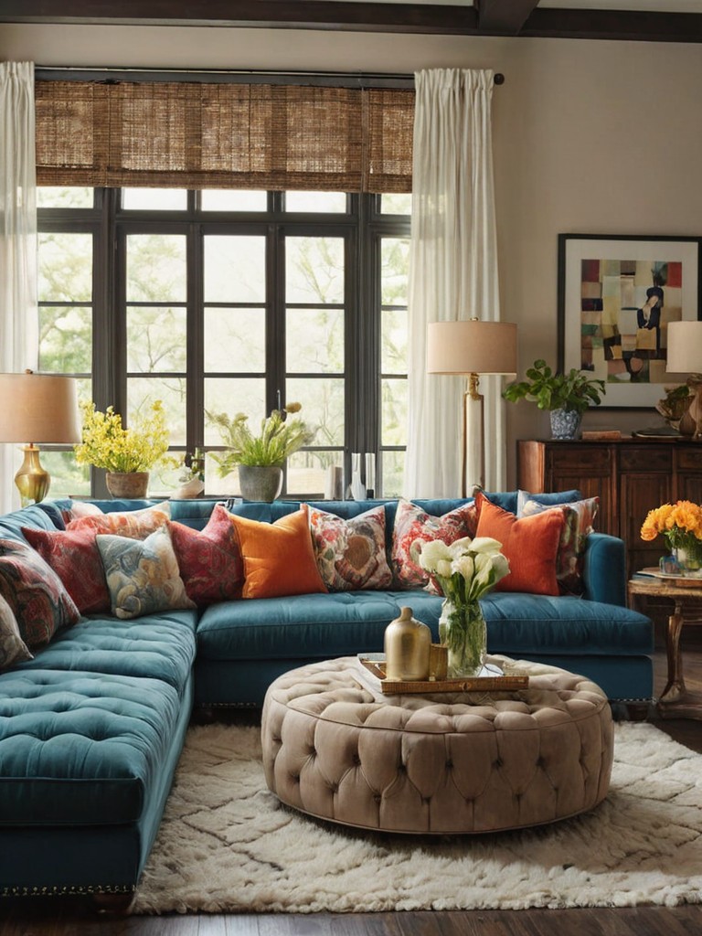 Rustic Charm: Transform your living space with a cozy and inviting farmhouse-inspired home decorating idea. Incorporate distressed wooden furniture, vintage accessories, and soft neutral colors to create a warm and rustic atmosphere. Complete the look with cozy blankets, woven baskets, and fresh flowers for a touch of natural beauty.