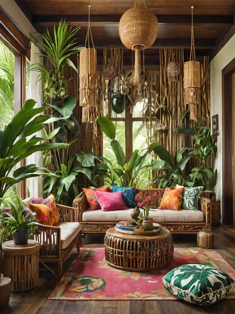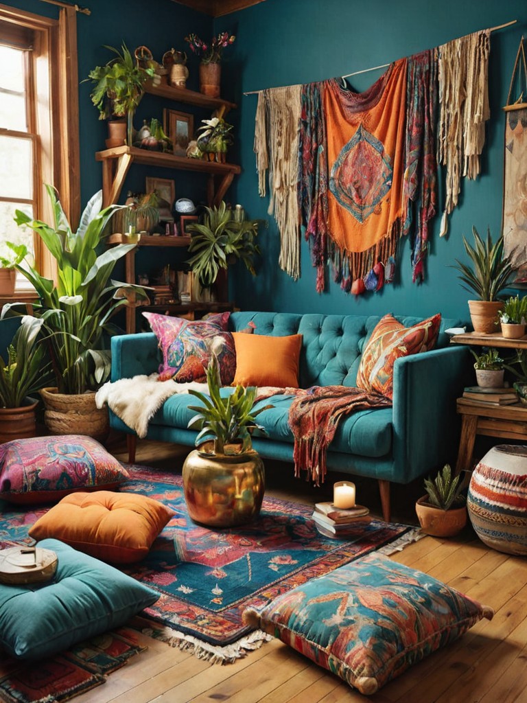 Moroccan-style cushions, Vibrant tapestries, Intricately patterned rugs, Ornate lanterns, Mosaic coffee tableDescription