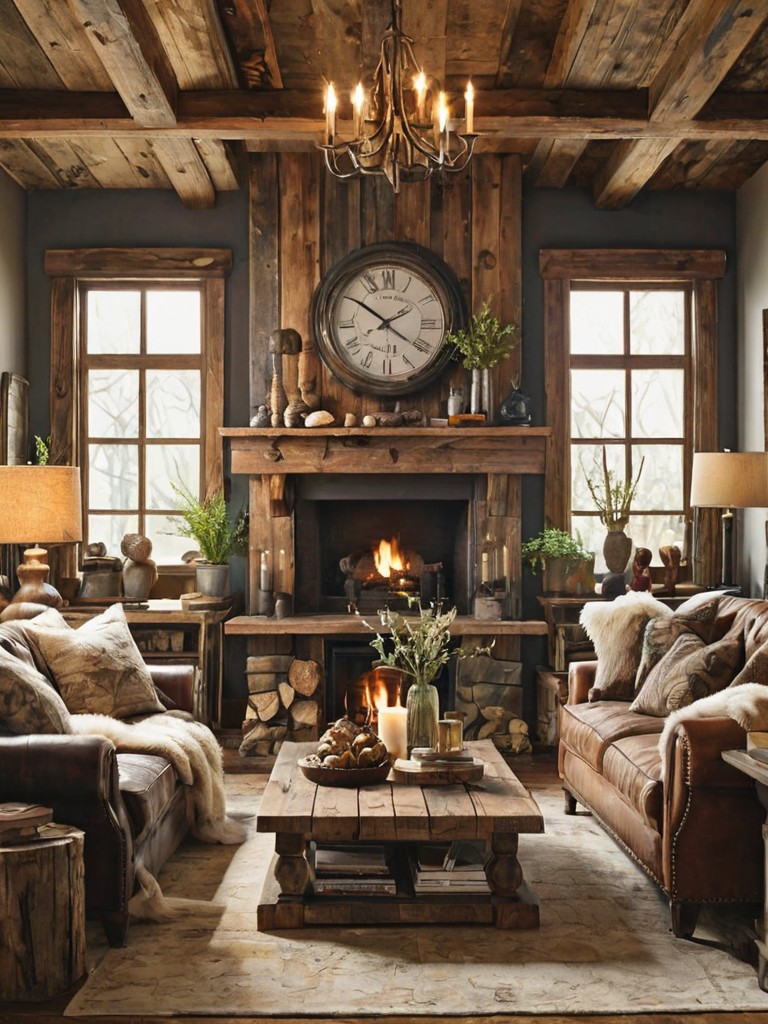 Rustic Elegance: Transform your living space into a cozy sanctuary with a touch of rustic elegance. Surround yourself with reclaimed wood furniture, plush fur throws, and a fireplace adorned with vintage-inspired clocks and candleholders. Embrace the charm of distressed finishes, earthy color schemes, and botanical prints, creating a harmonious blend of warmth and sophistication in your home.